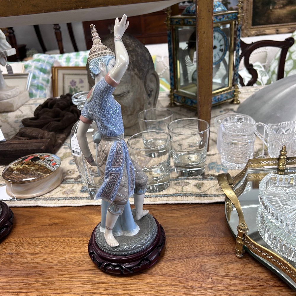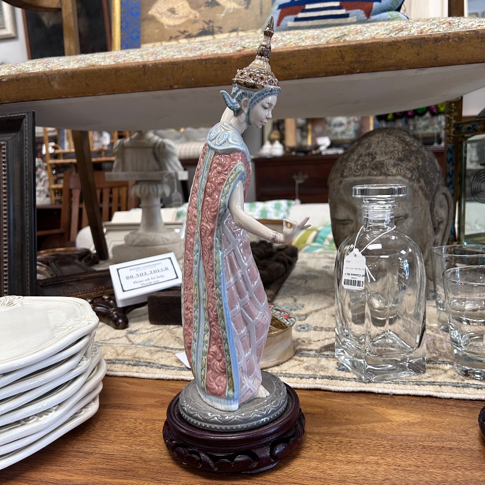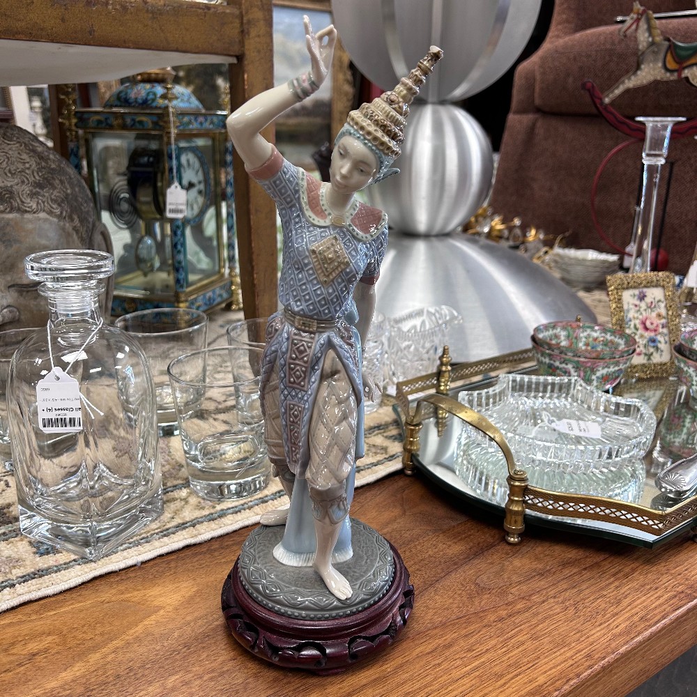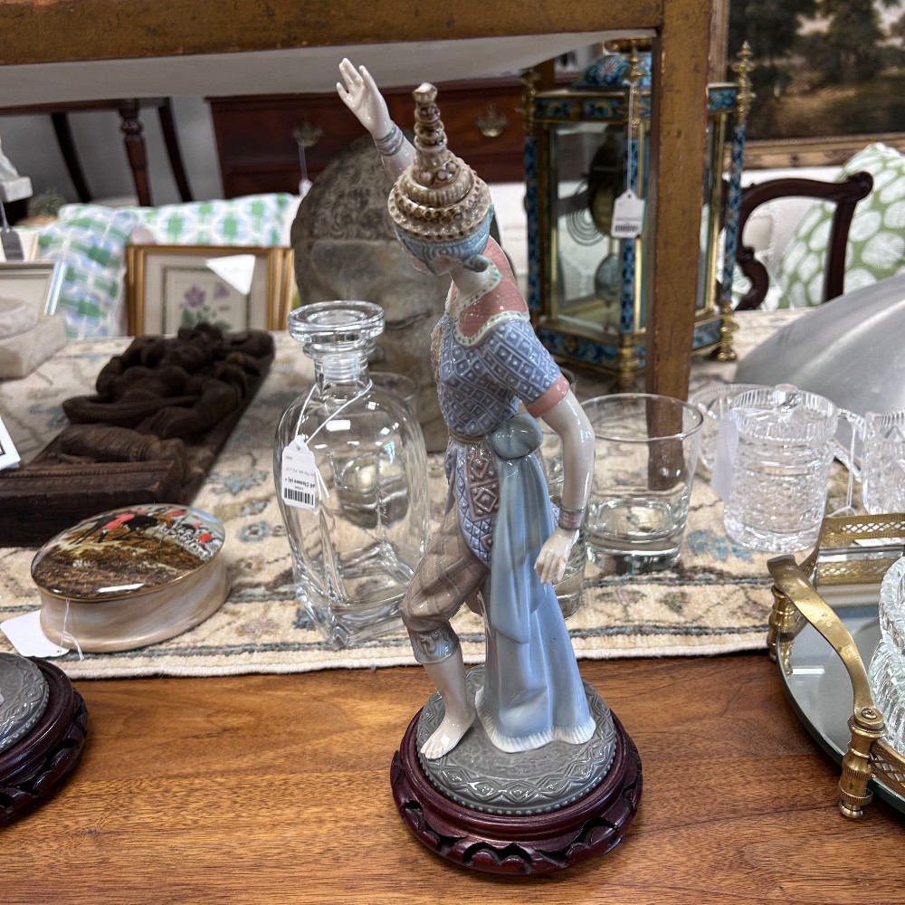 on a wood stand, h, 14", diameter 4 3/4", small chip on a male figurine