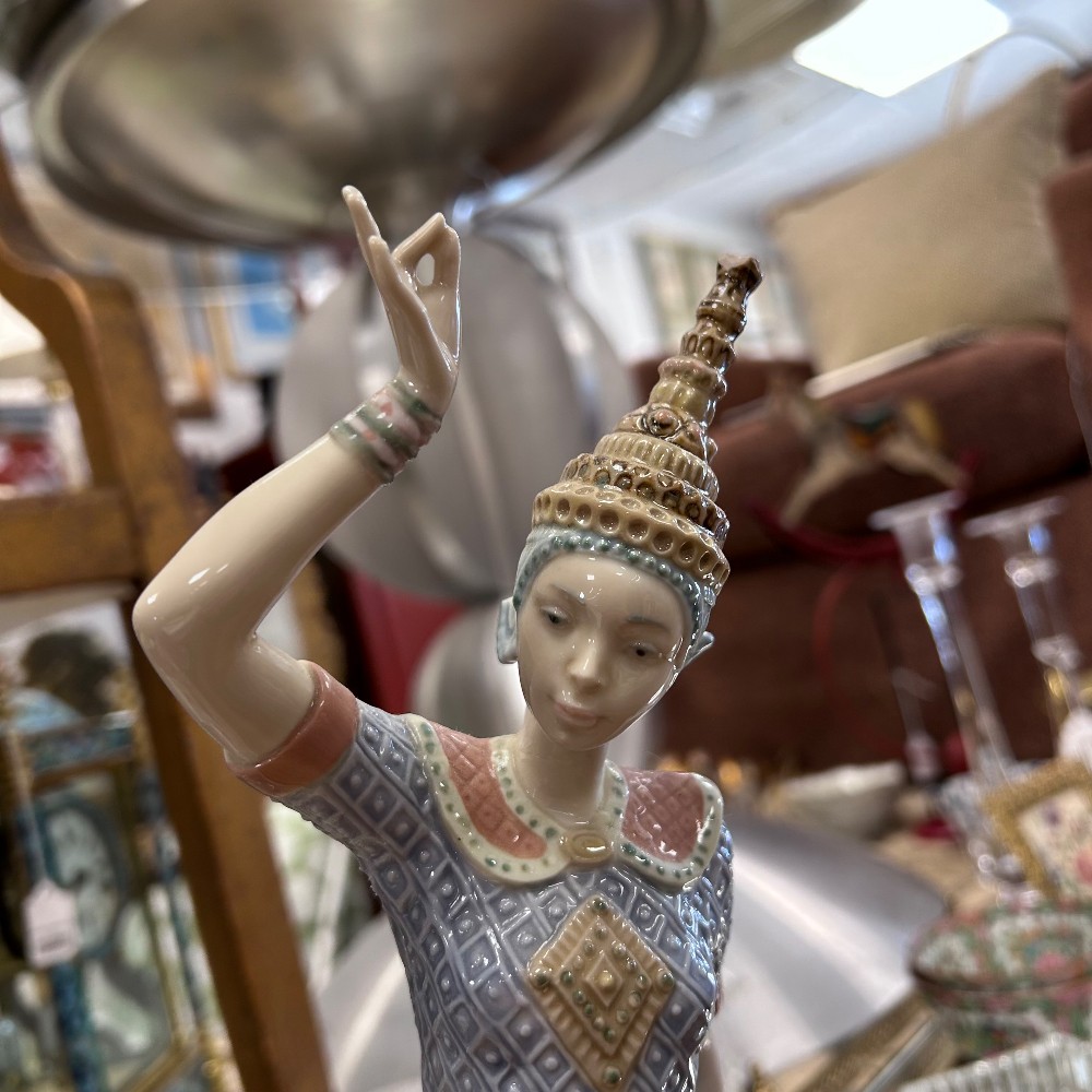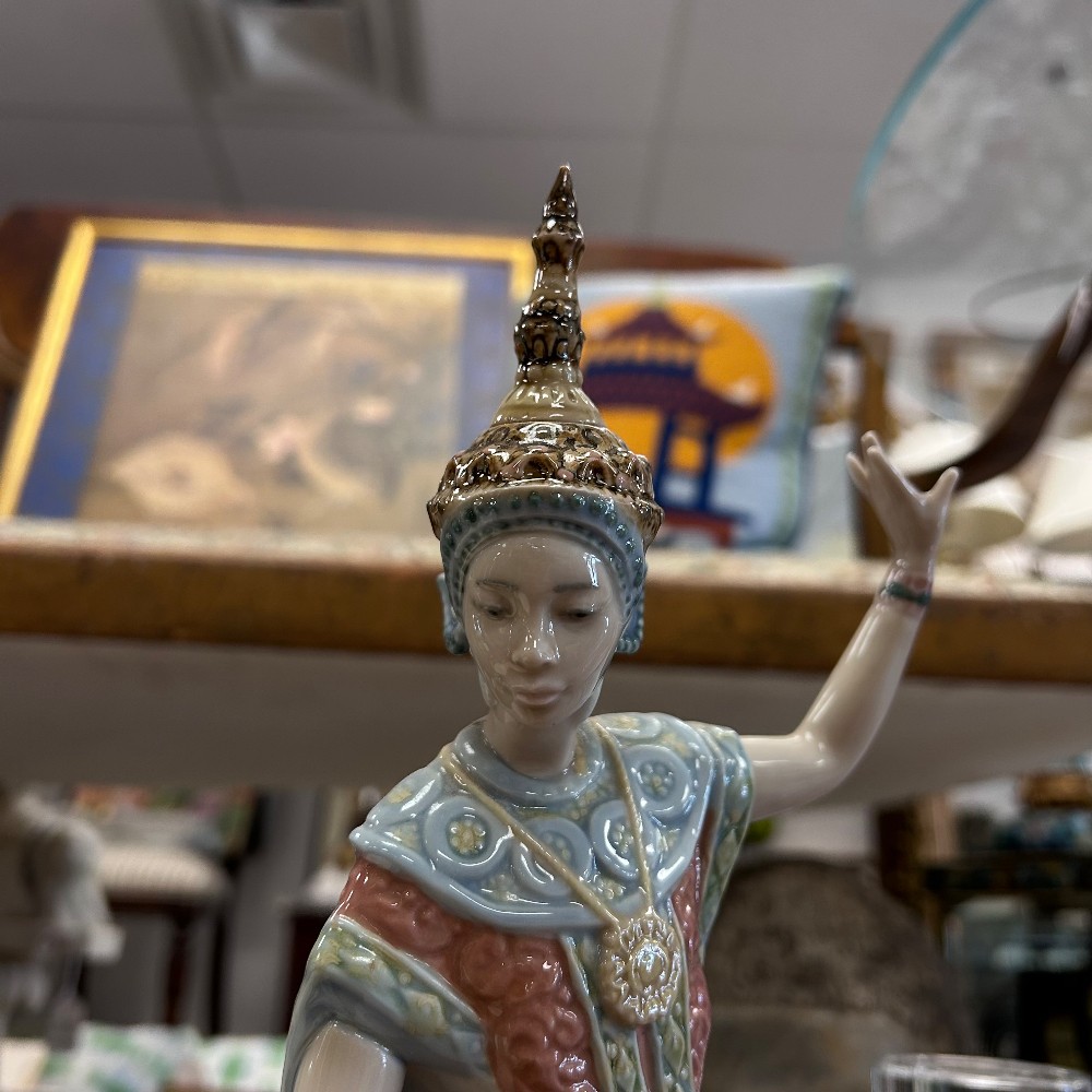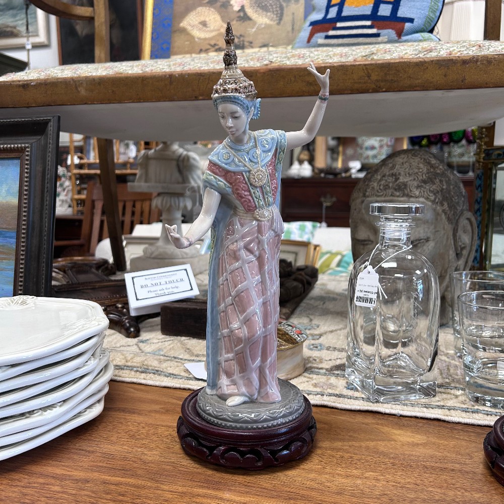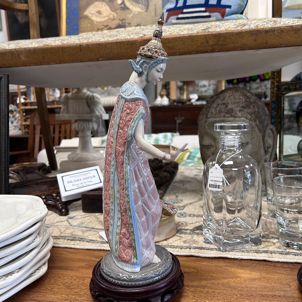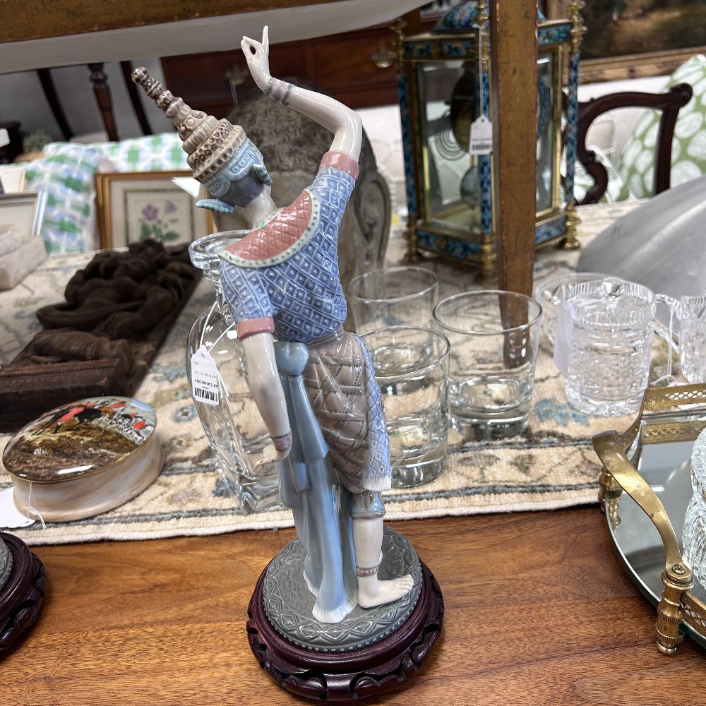 on a wood stand, h, 14", diameter 4 3/4", small chip on a male figurine