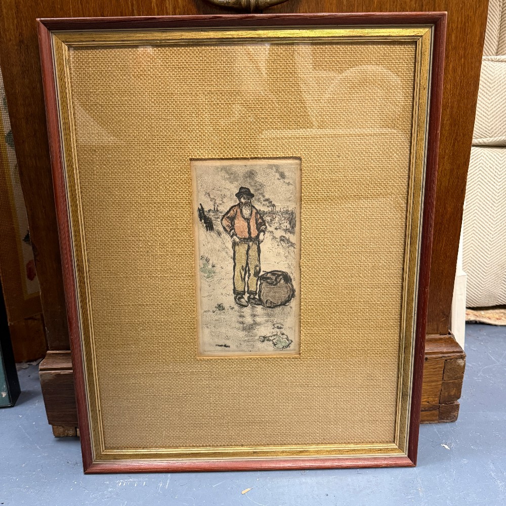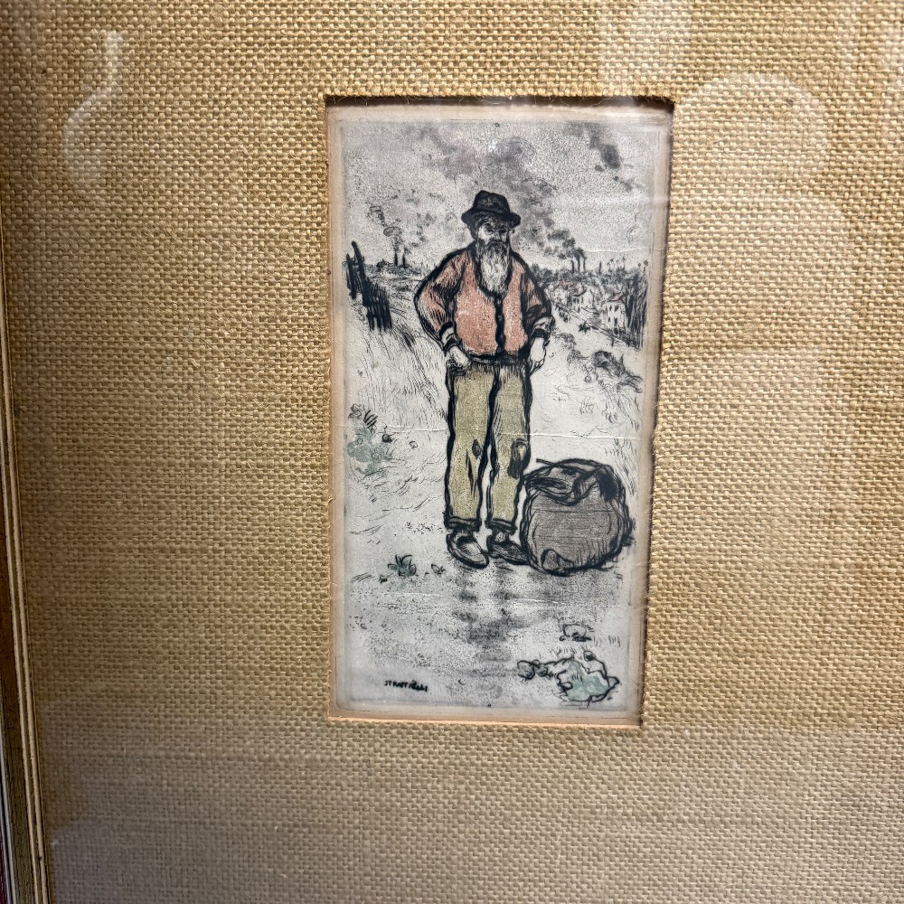 15.5" x 19 Oil Pastel Pen and Pencil, 1850-1924 French Realist painter and artist Le Chiffonier