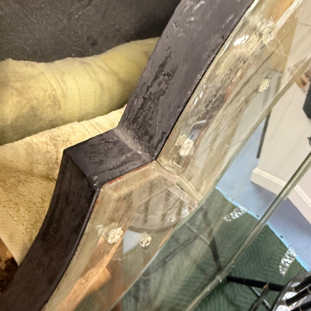 heavy, wood backed, good mounting system 33 x 48 x 1.25" thick
