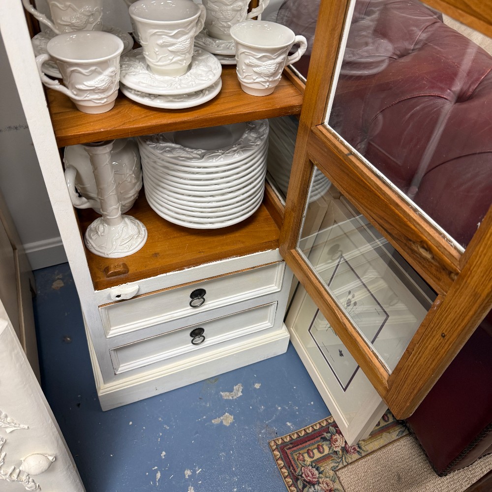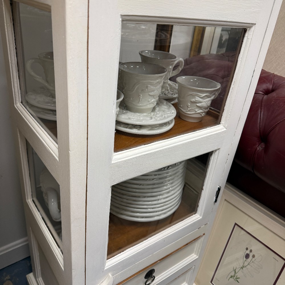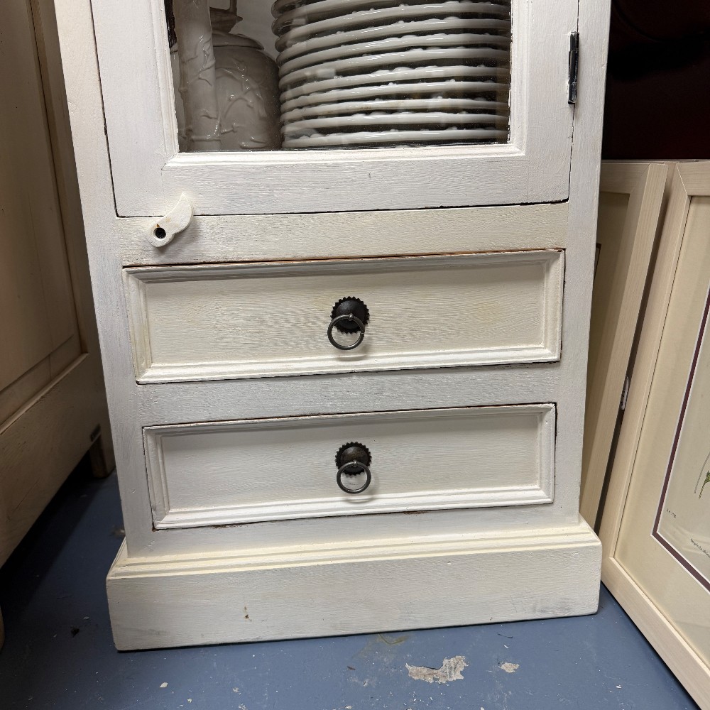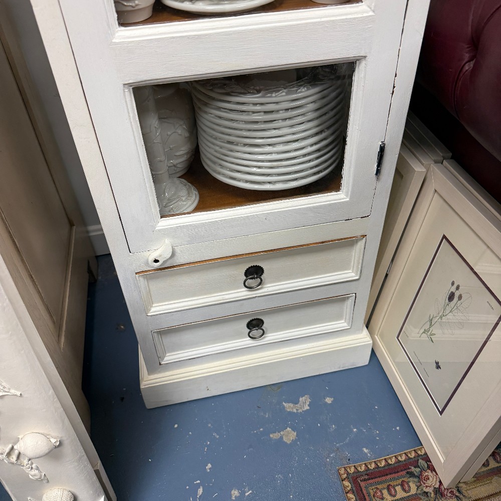 5 Shelves, 2 drawers. Measuring 71"T x 20"W x 17"D