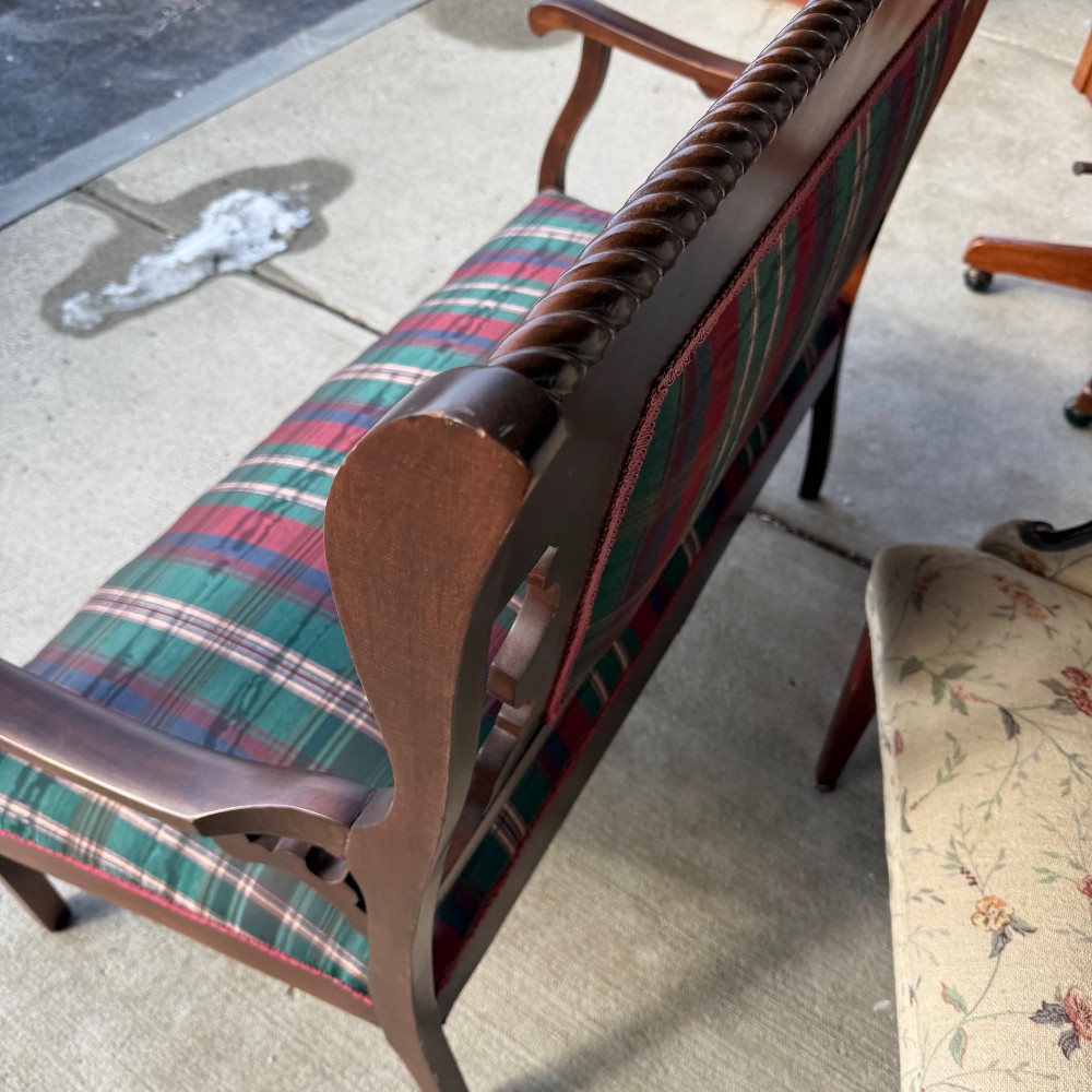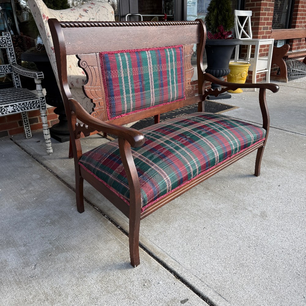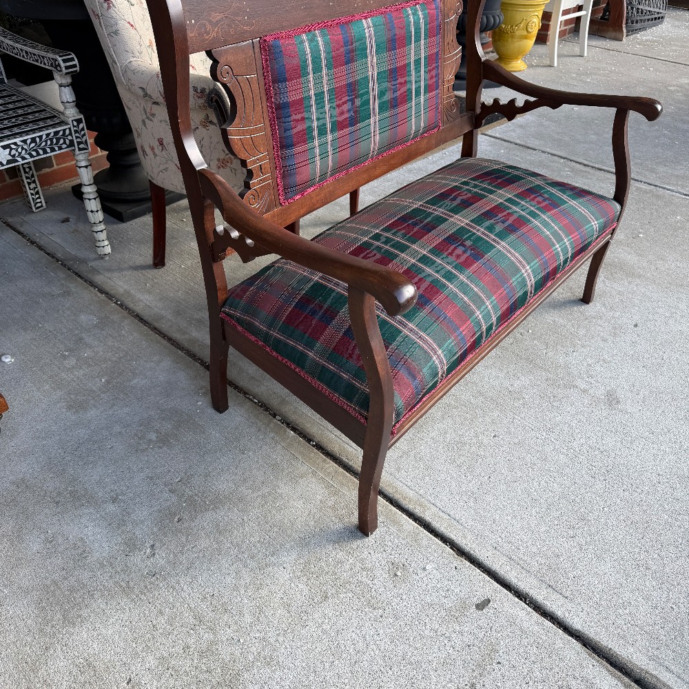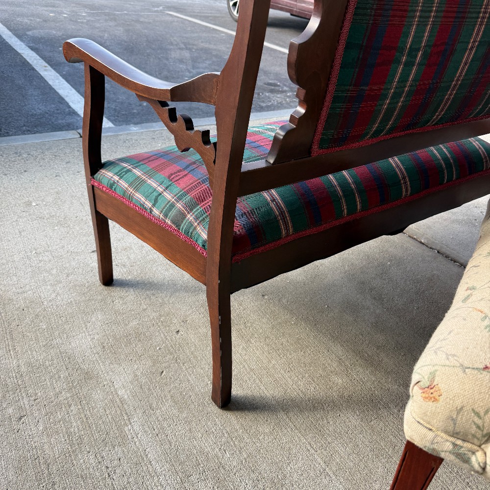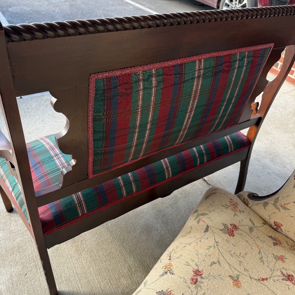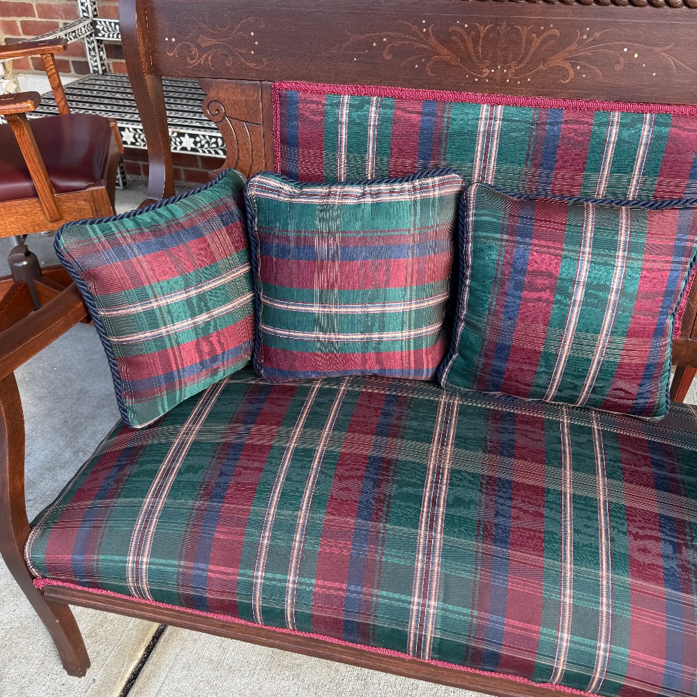 with three pillows, 24" deep 42" wide 18" set height and set depth is 18" and back is 39" h
