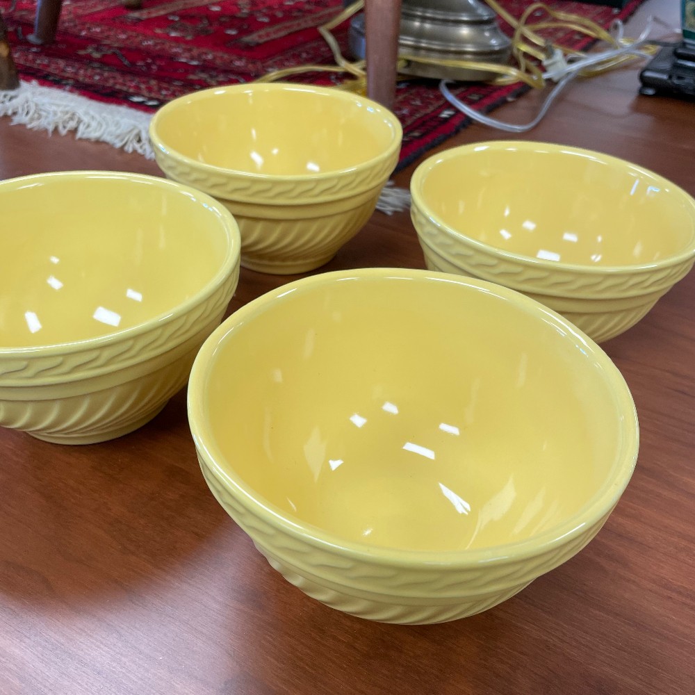 Cheery yellow. Measuring 3"T x 5 3/4"D. Condition as pictured