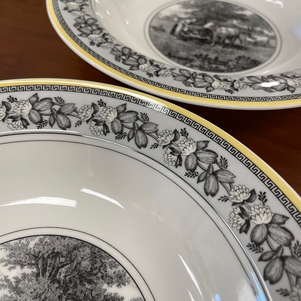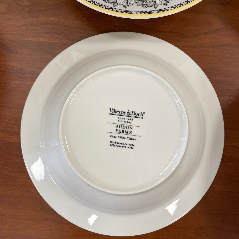Yellow, white & black. Measuring 7 3/4"D. Condition as pictured