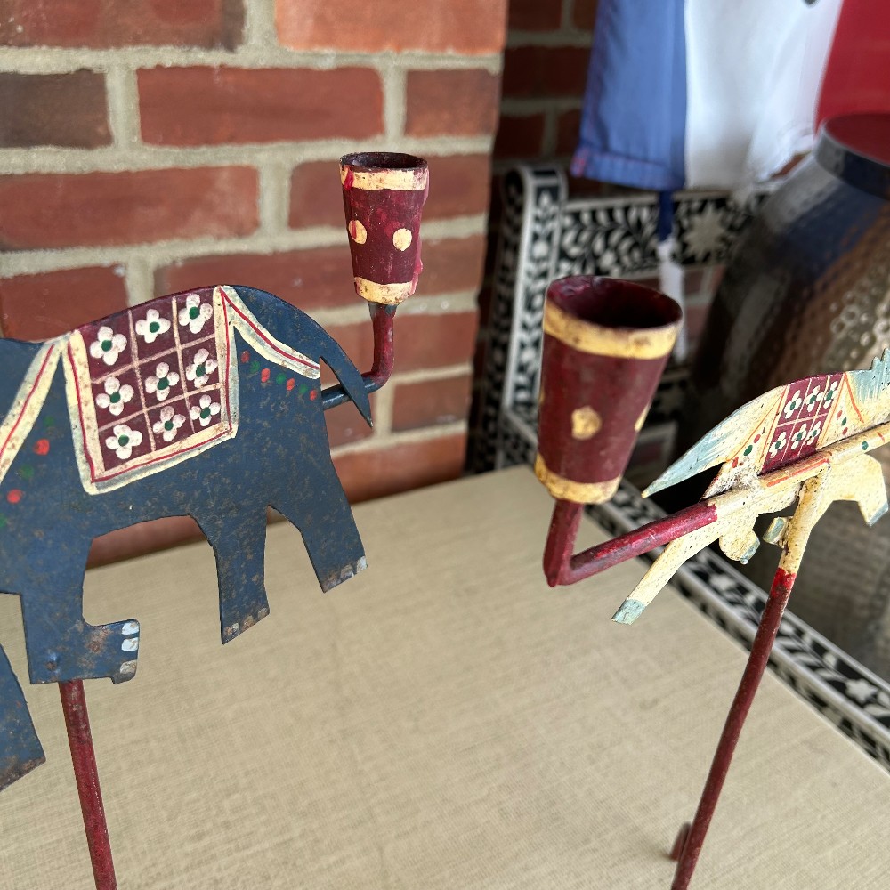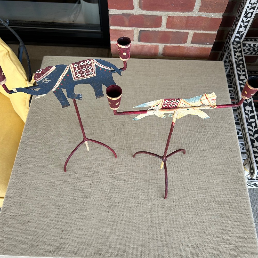 Folk art donkey & elephant. Measuring approx 11"W x 16"T. Condition as pictured