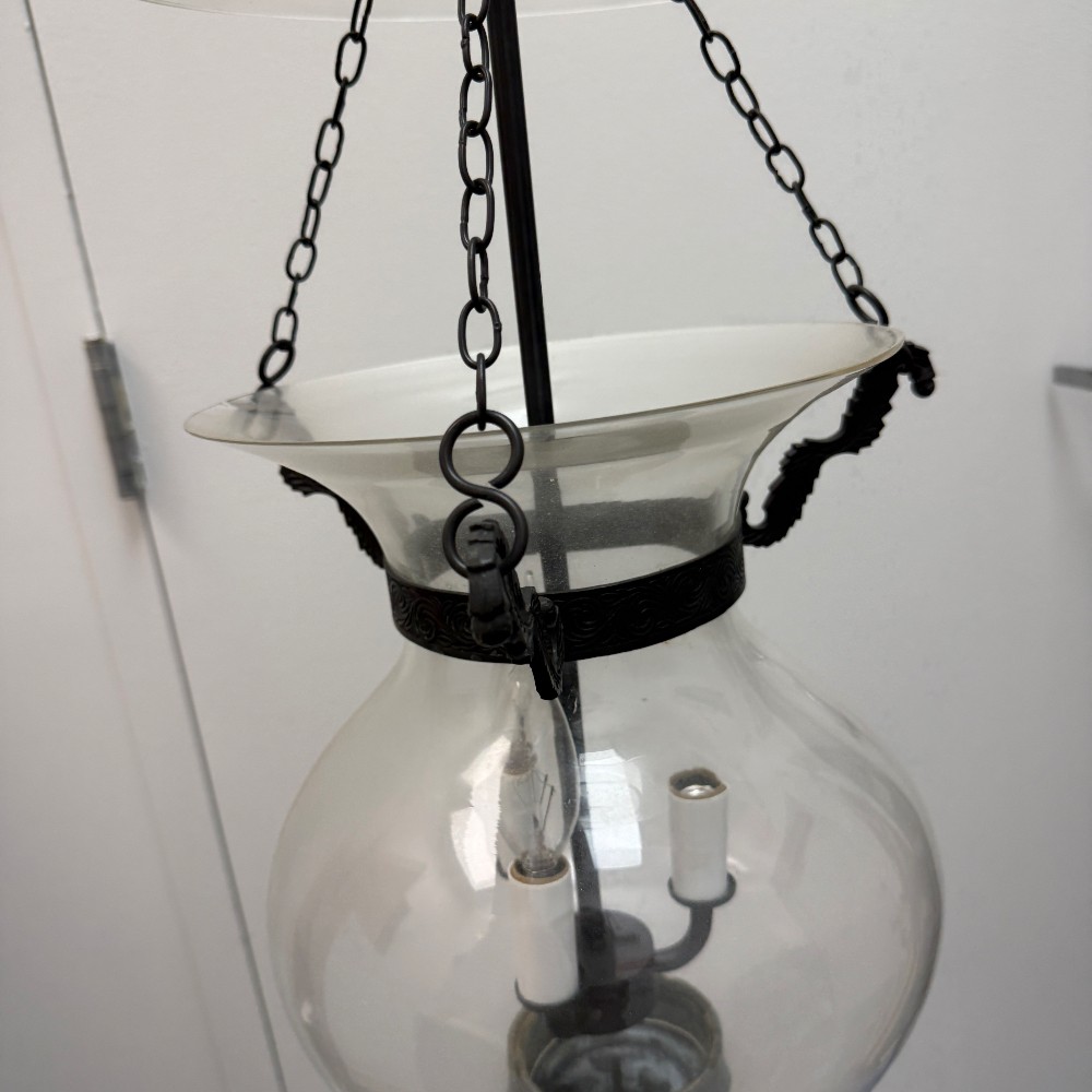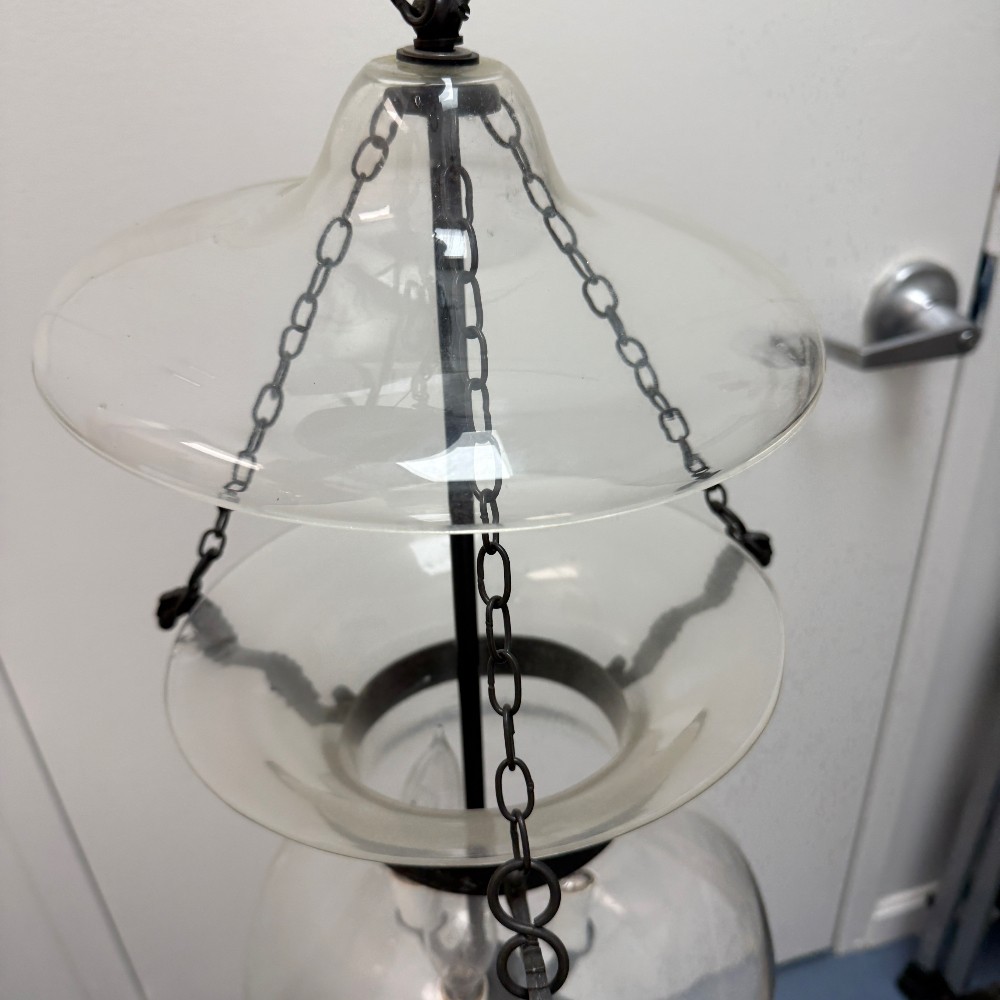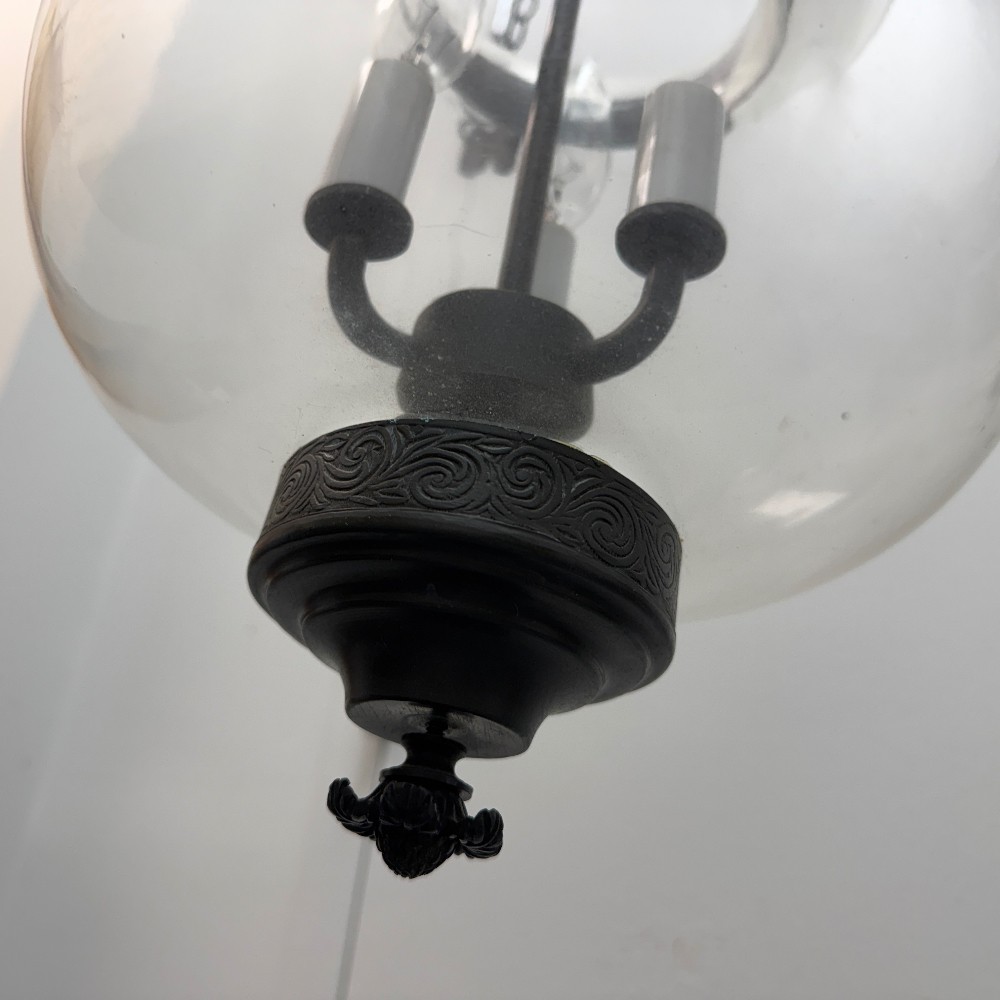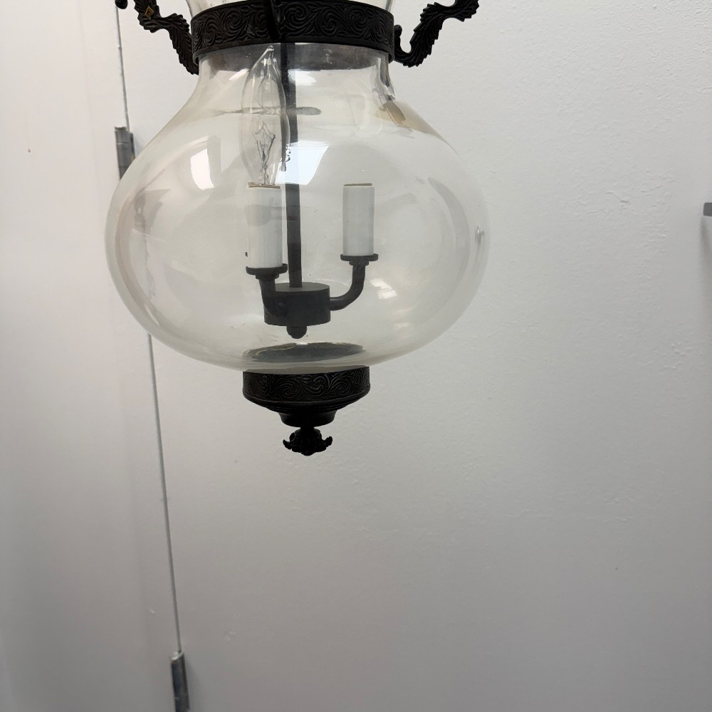 22" tall, 12" D (wire for electricity) & 1 small crack in glass