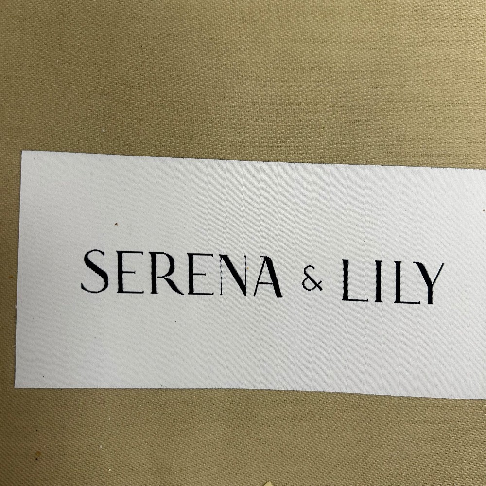 Pair of chairs. Slight discoloration on arms, as pictured. Soft blue and white floral pattern