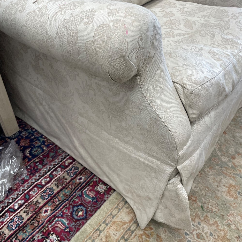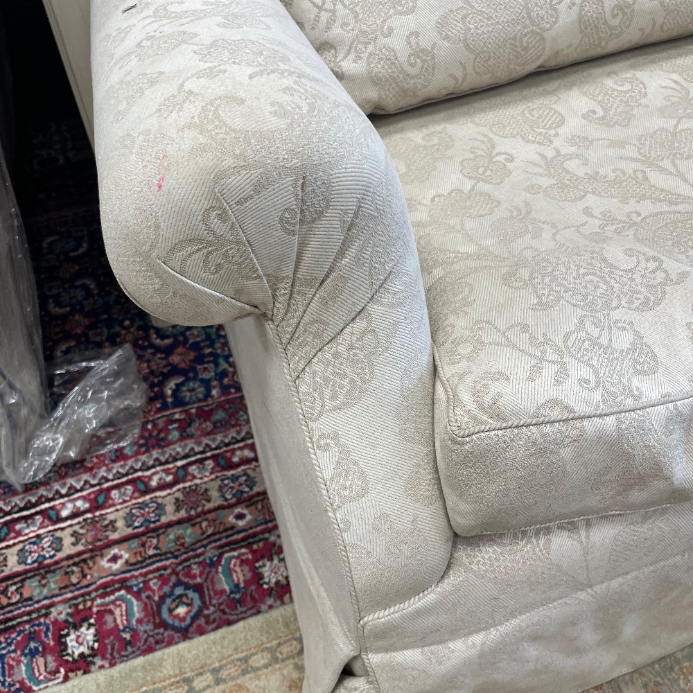 h. 35", seat h. 18", w. 34", d. 31", seat d. 22", stains