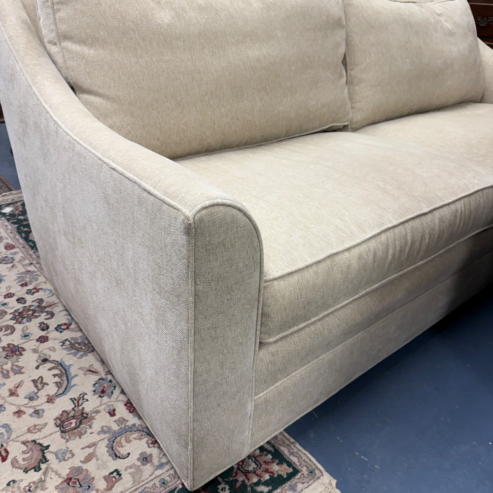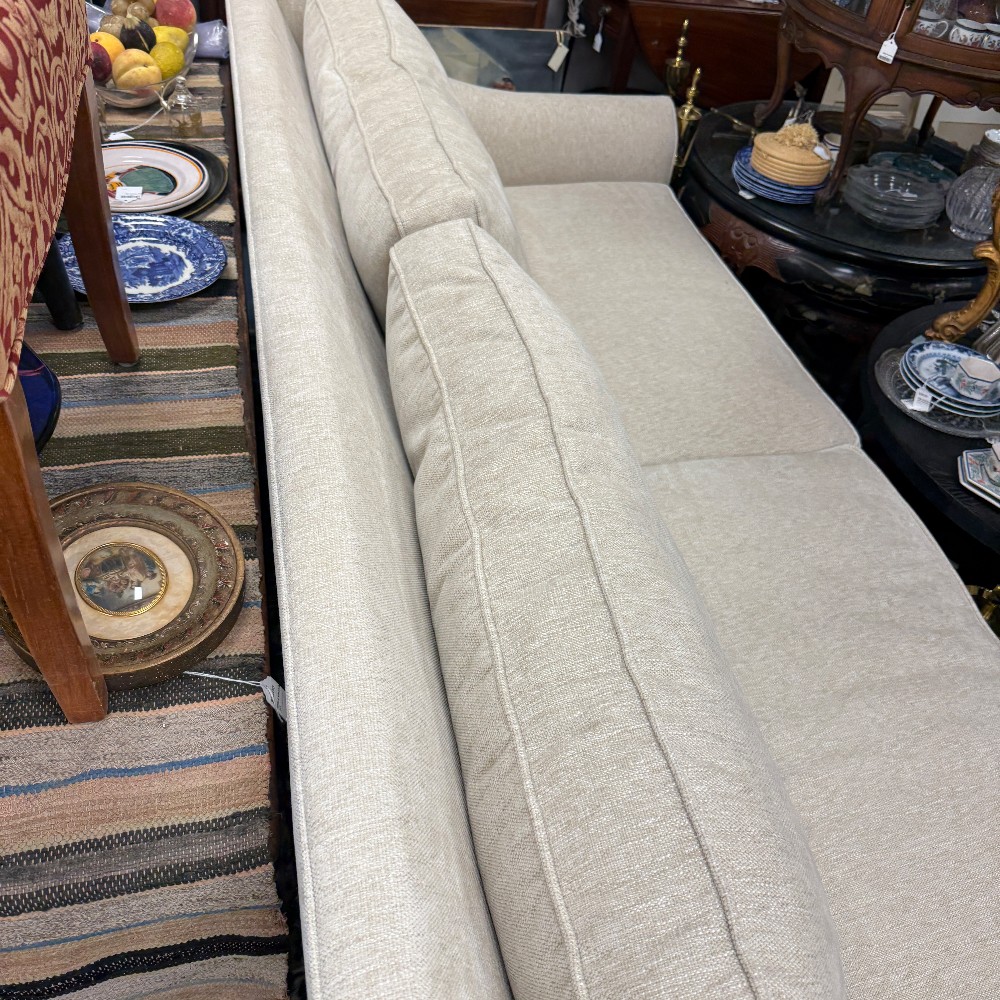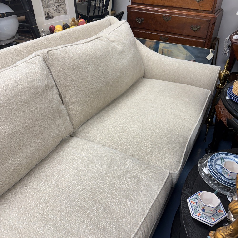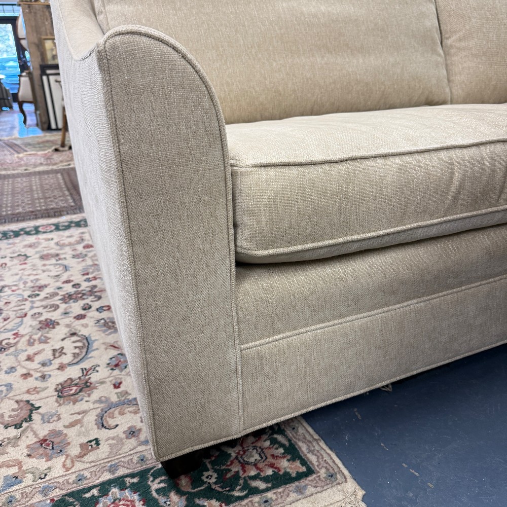 like new, 18" seat height, 24" arm height, 34.5" back height, 87" wide, 23" seat depth, 42" overall depth