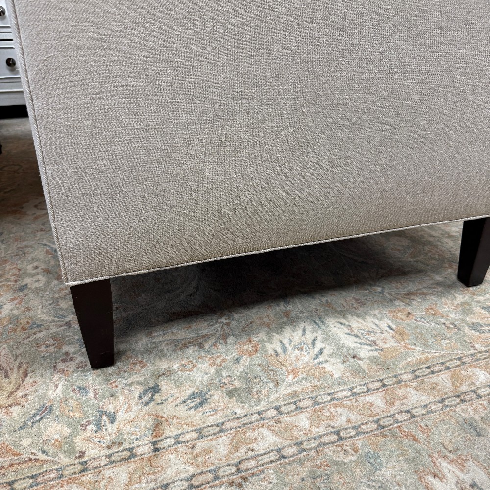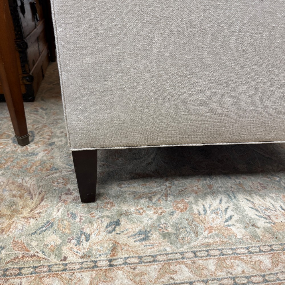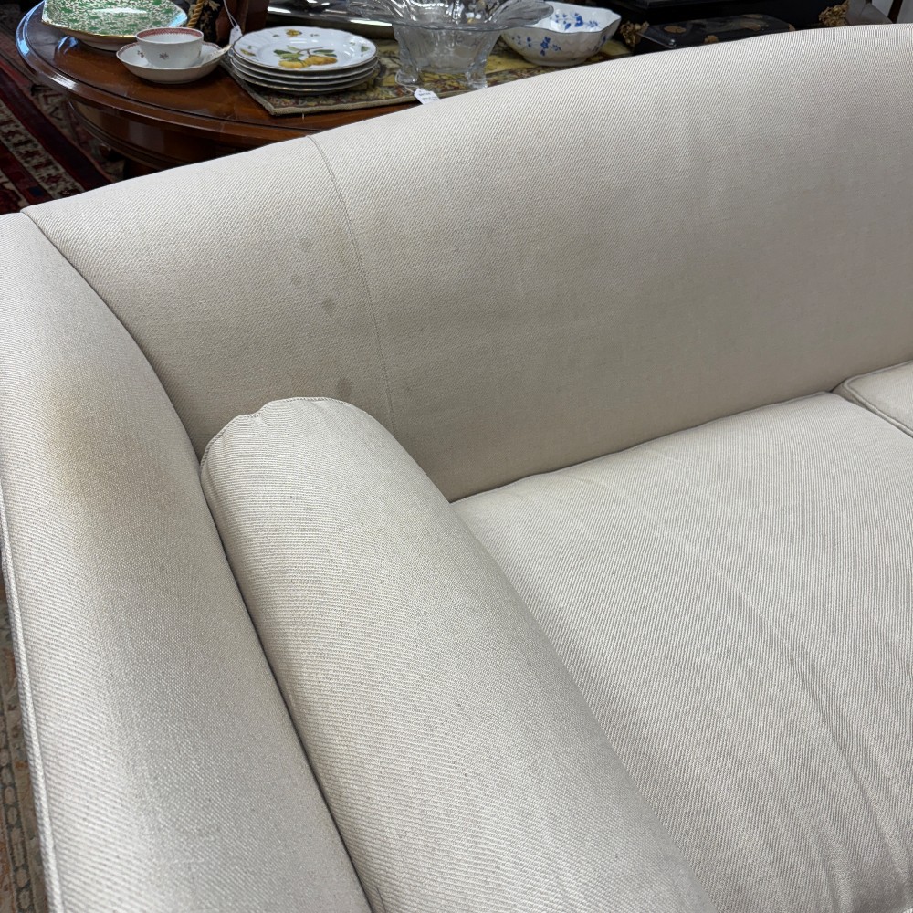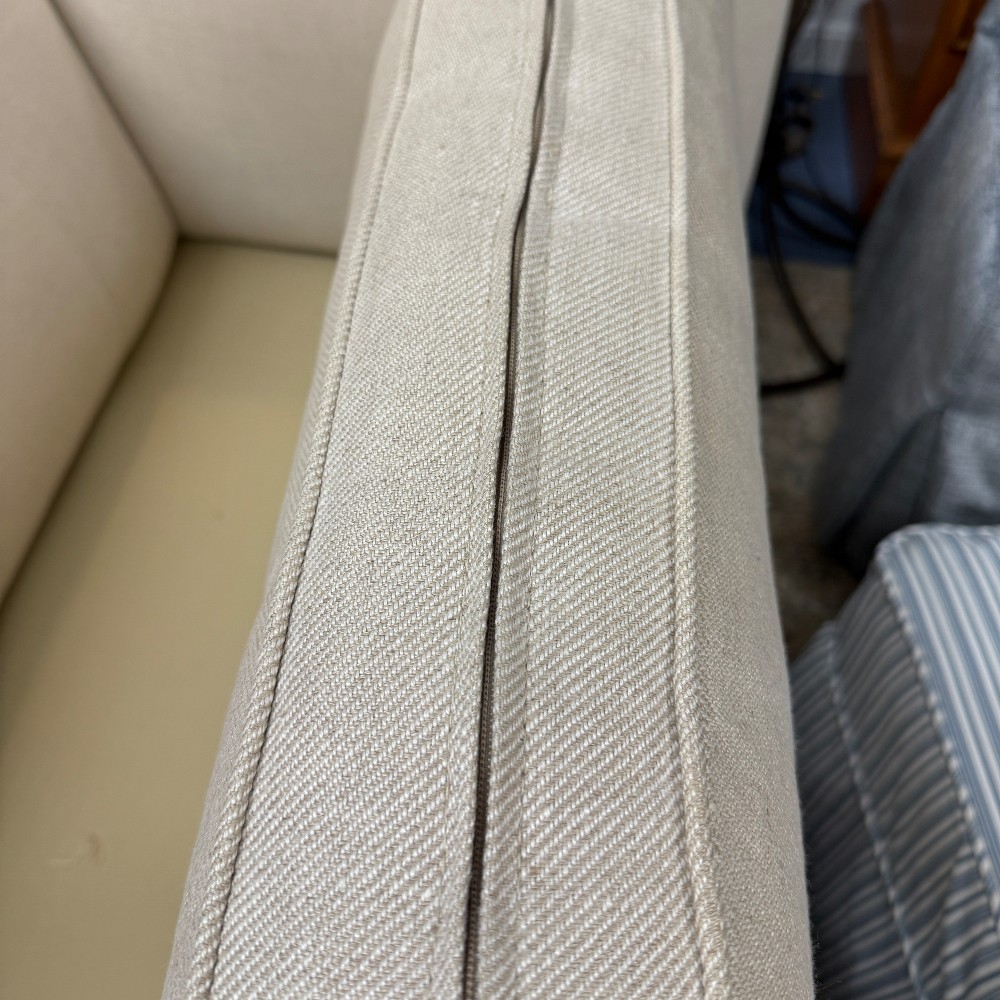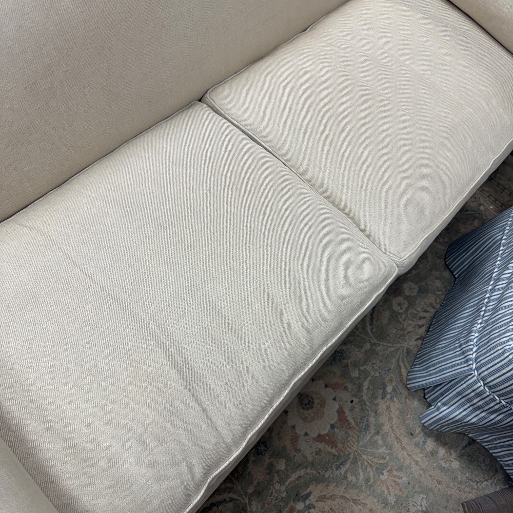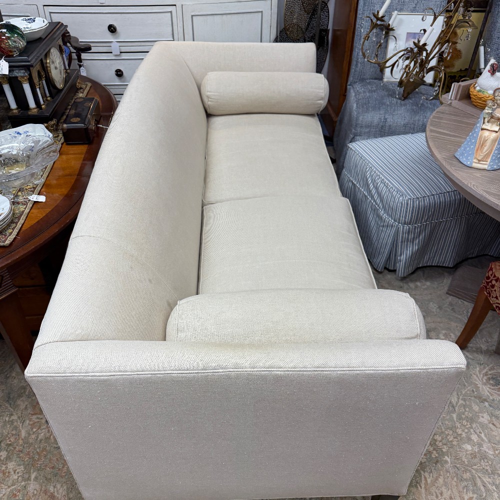 33" deep, 29" high (back and arms) seat height 18.5" and 82: wide - Foam with down seats and bolsters