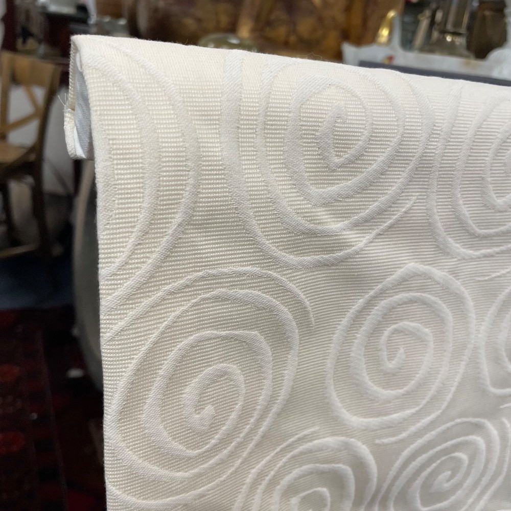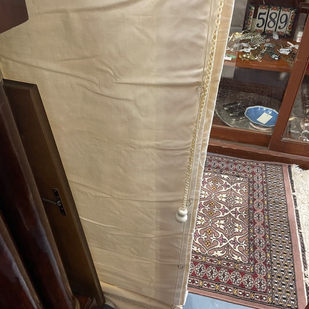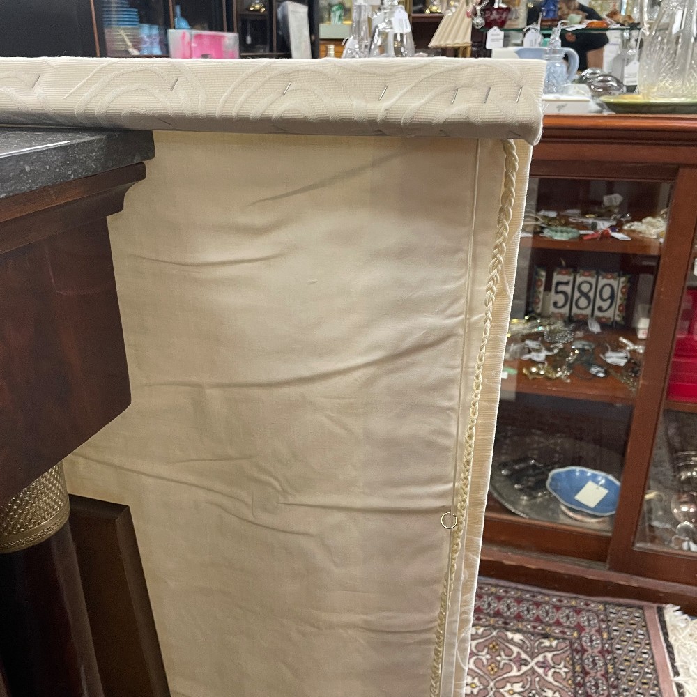 Creamy white, lined. Measuring 40 1/2"W x 62"L