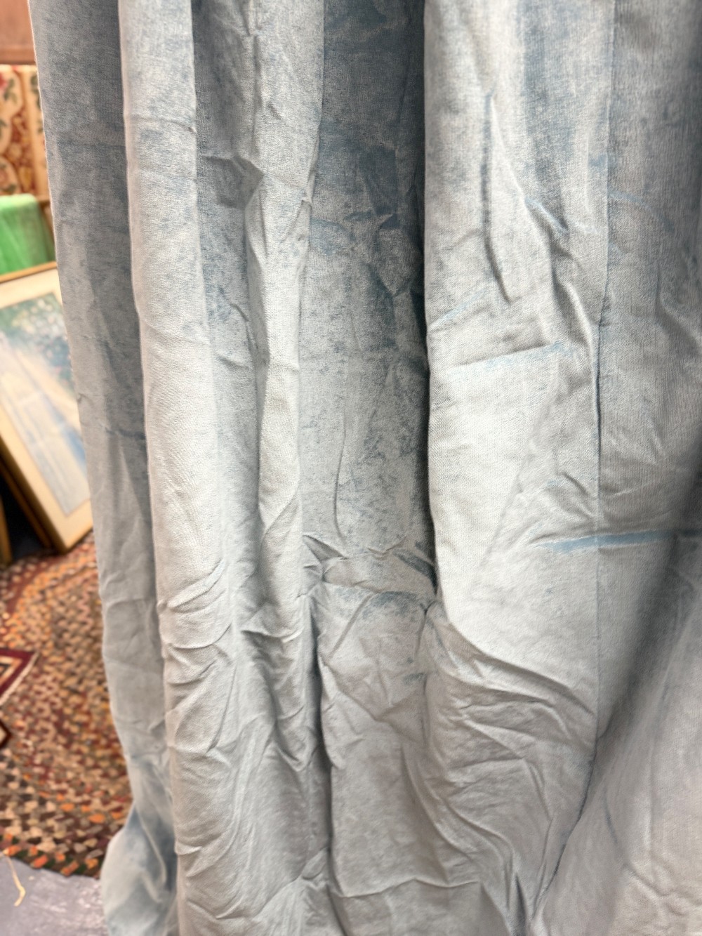 top, 29" wide, bottom 81" wide and 95" tall - lined, pleated top and ready to hang