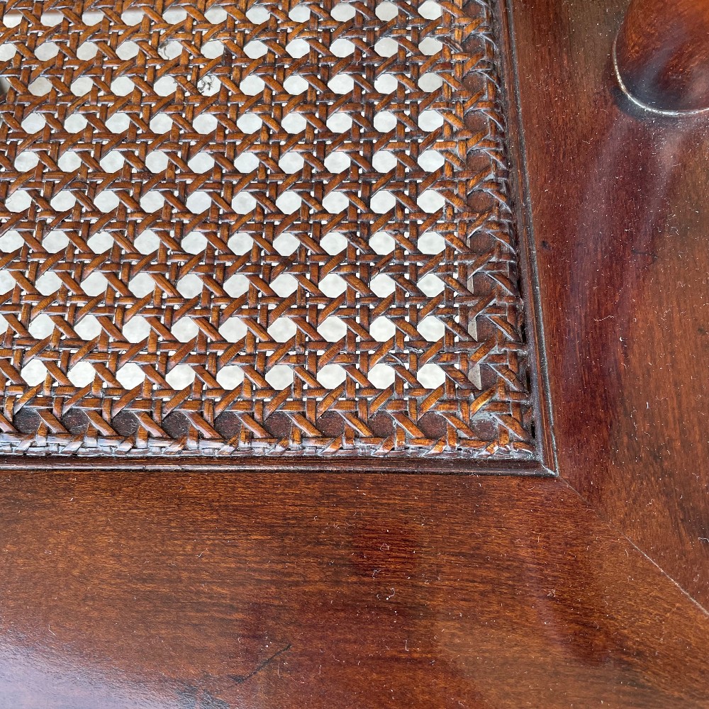 mahogany/ cane, h. 41", seat h. 16 1/2", w. 22", d. 19 1/2"