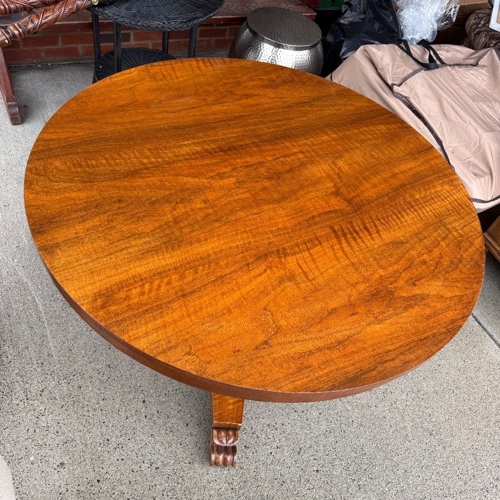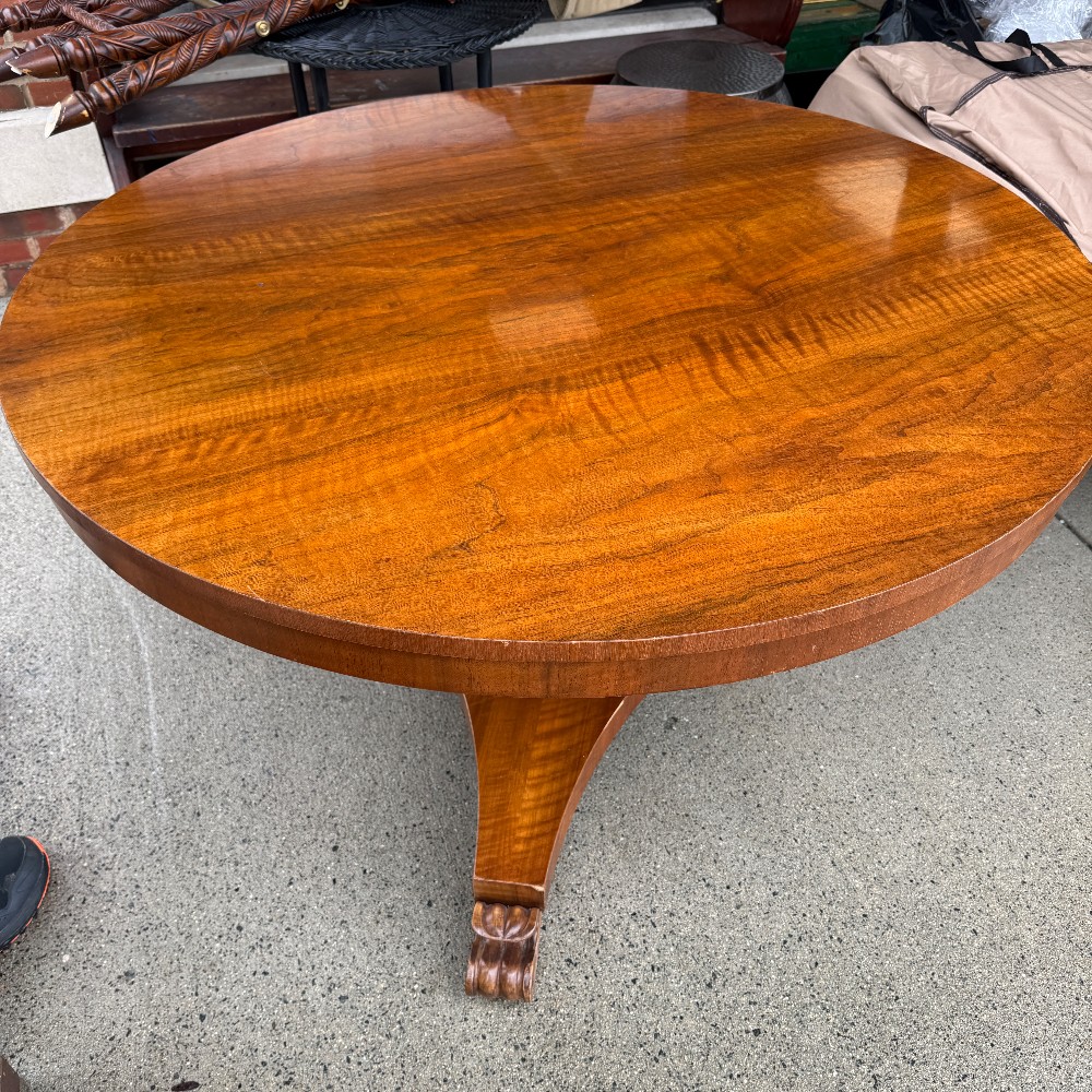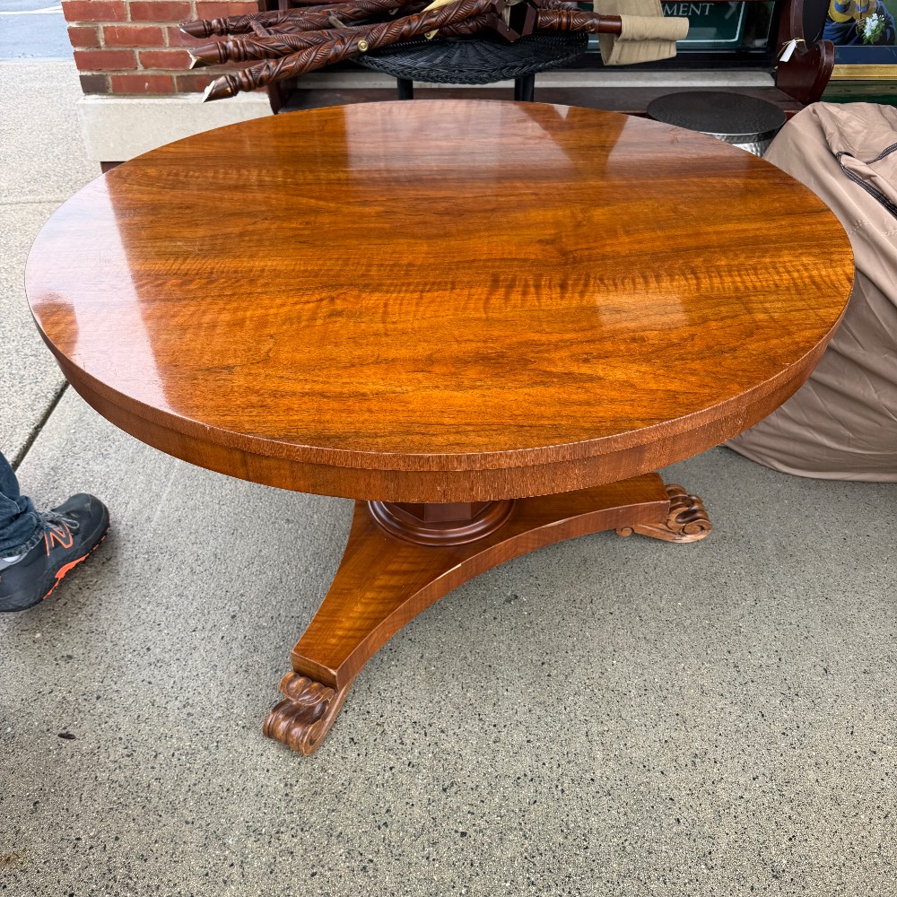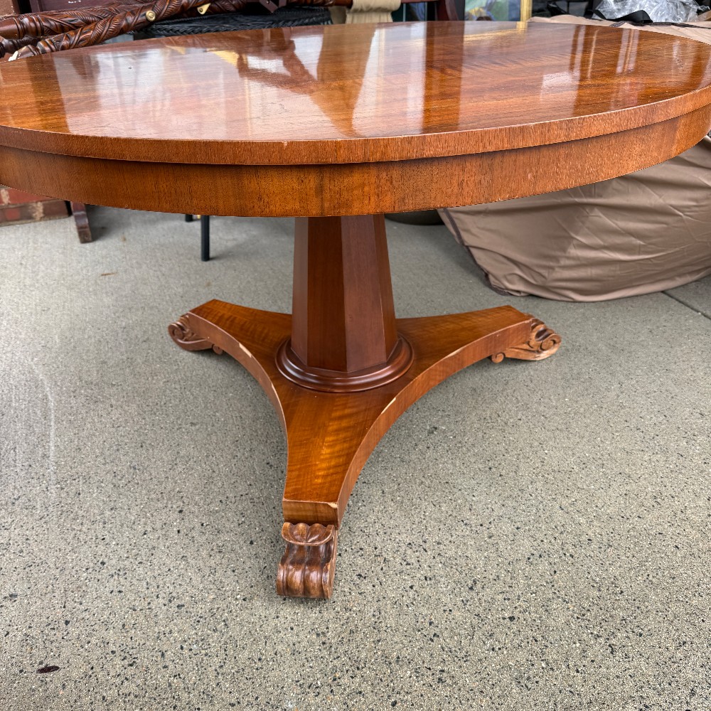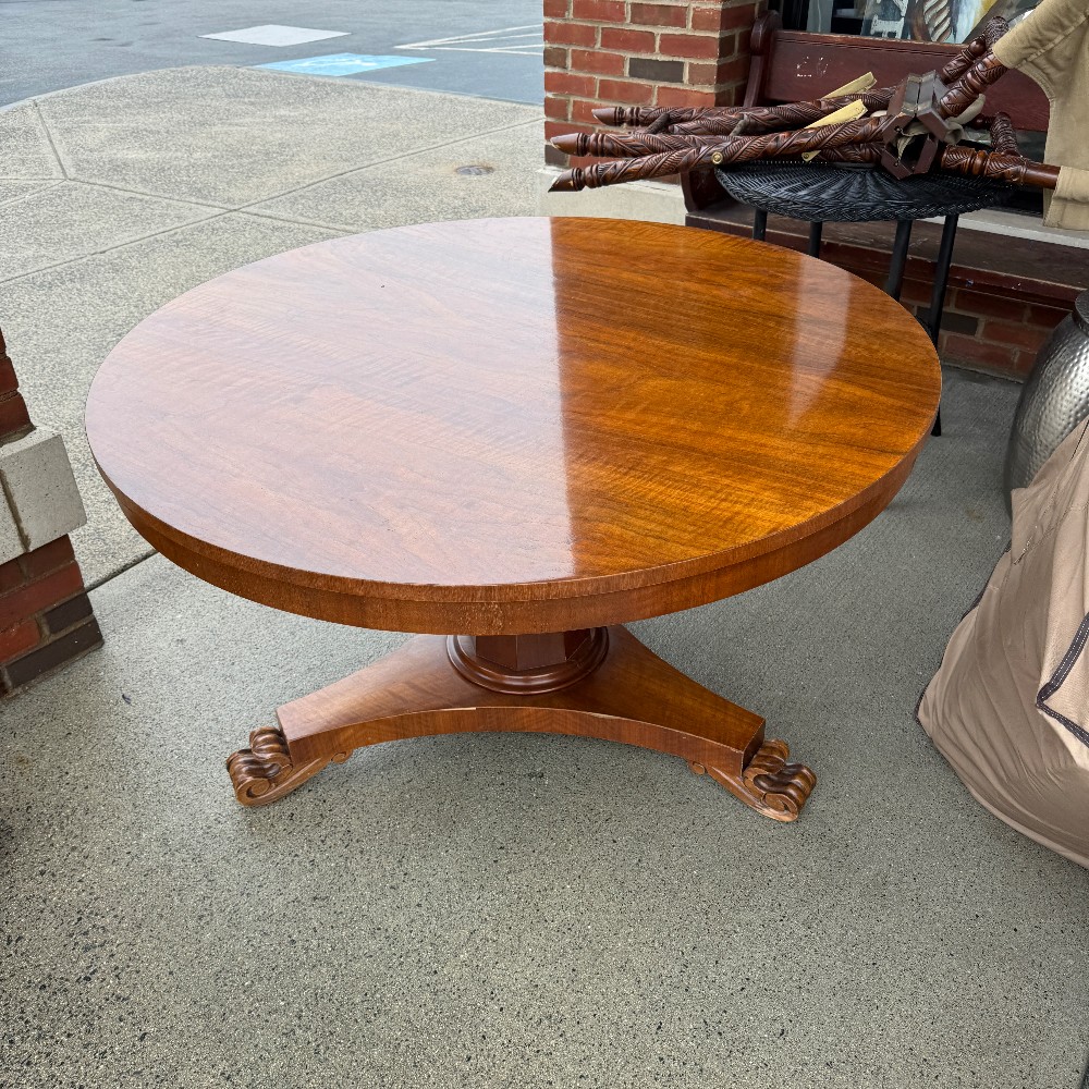 28" tall 48" D and 3" thick, pedestal base