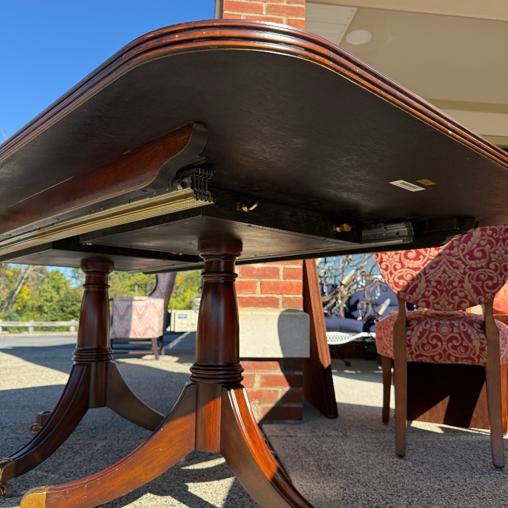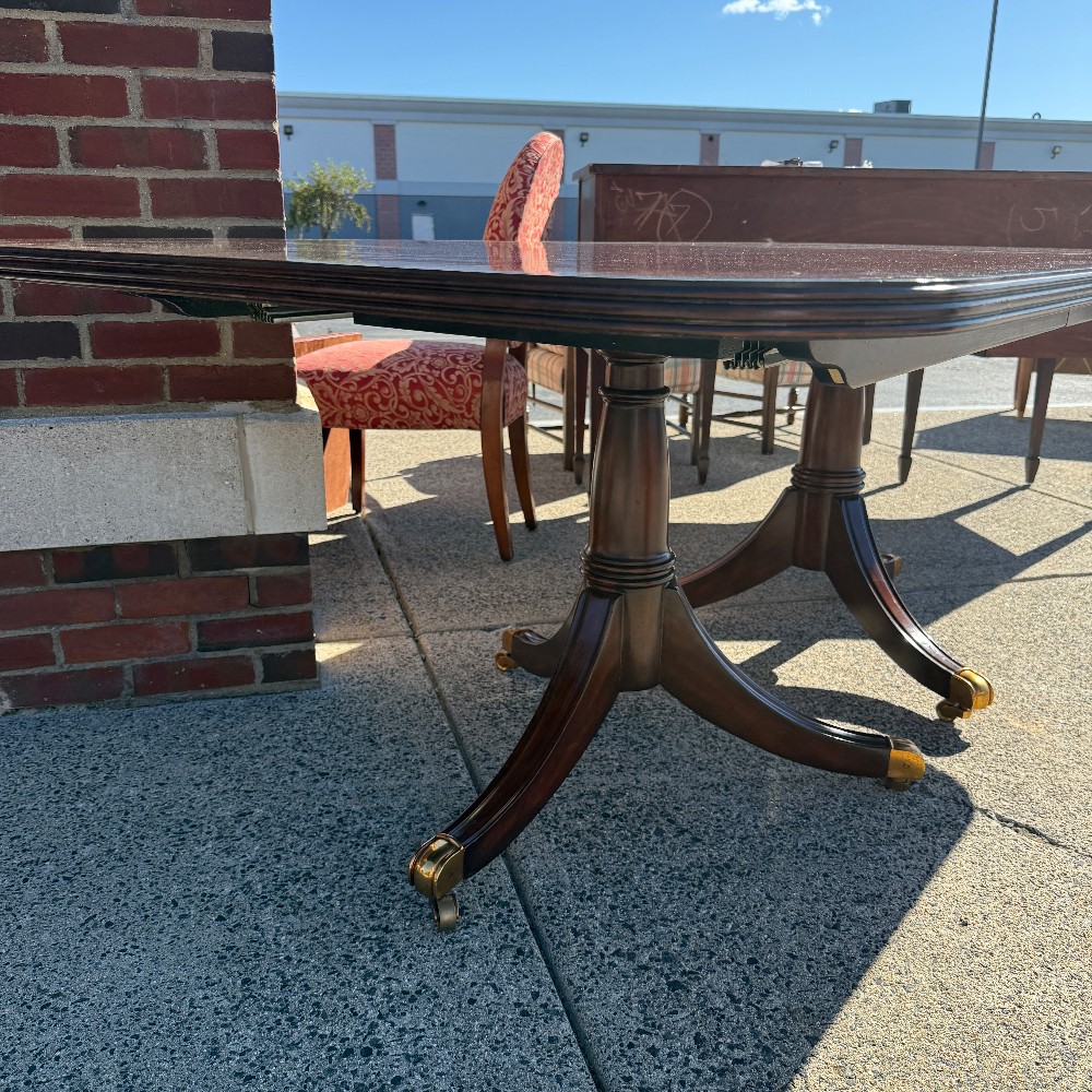 with two inserts (20" each) and pads, 29.5" tall, 43.5" wide and 80" long - double pedestal with brass castors