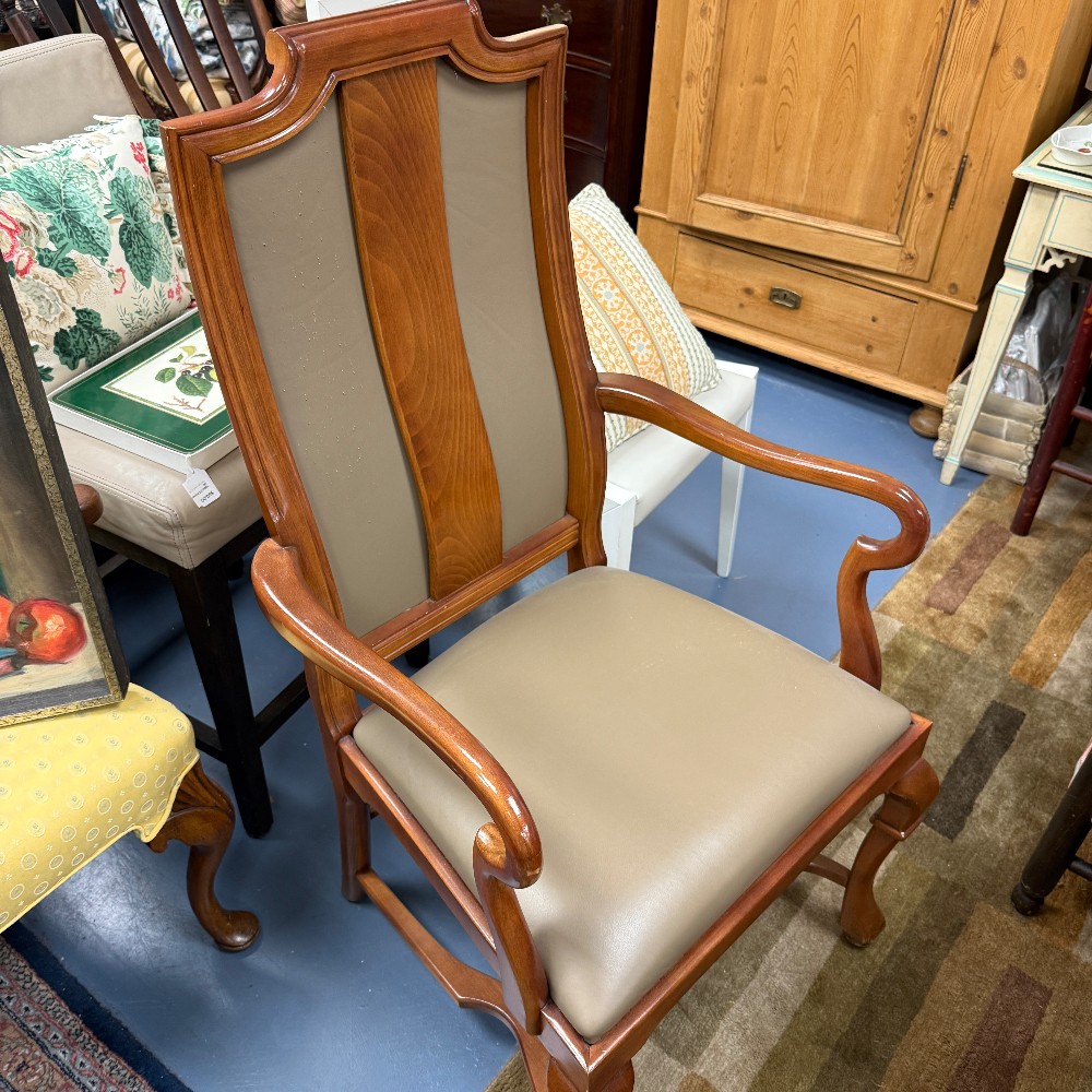 two with arms, 23" w (arms) and 19" wide (no arms) seat height 18" tall and 18.5" deep and 44.5" tall