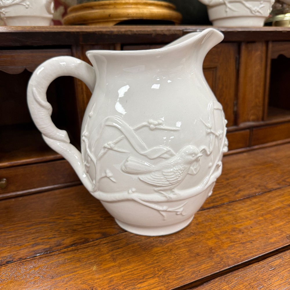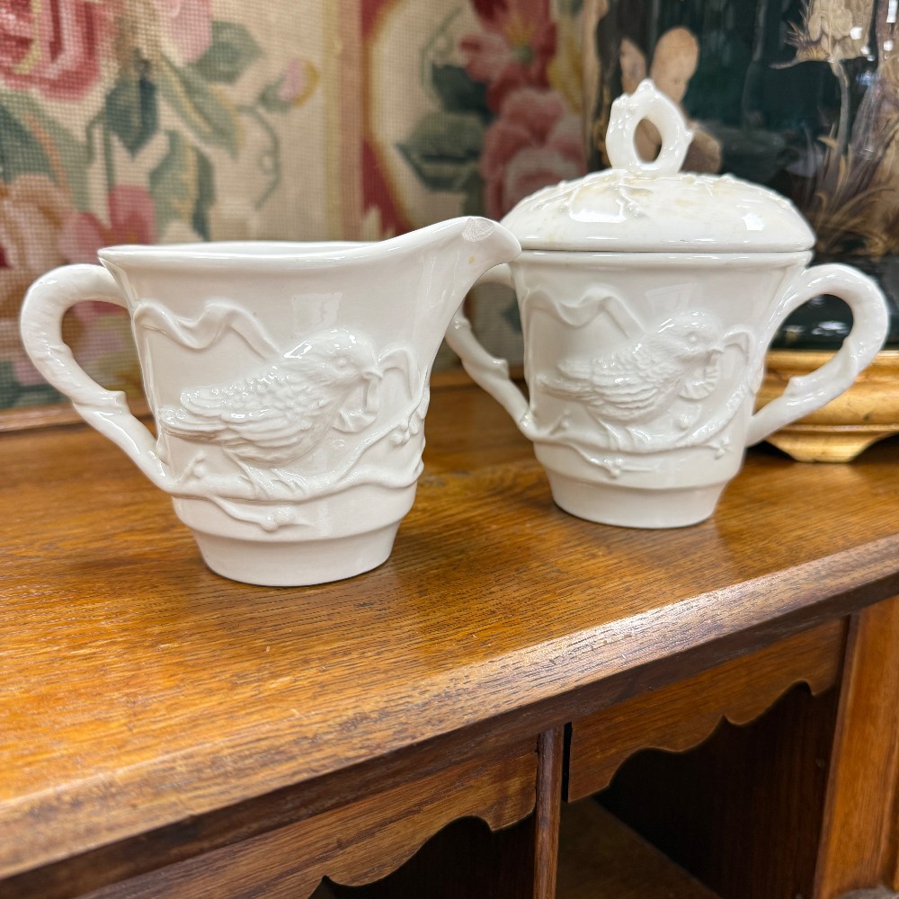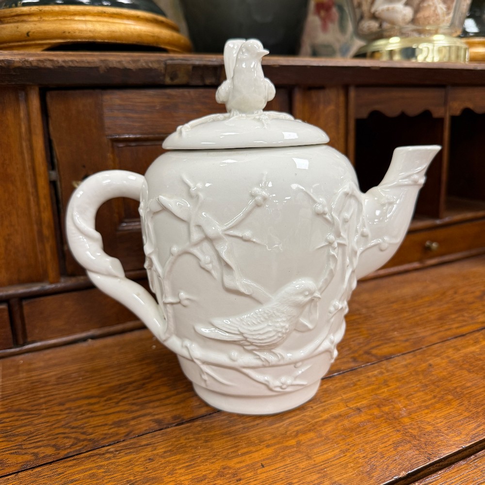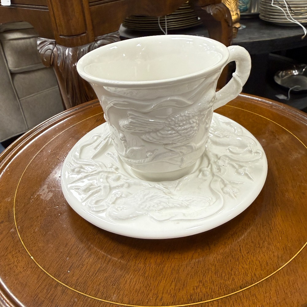 66 pieces total : 12 dinner plates (11"d), 12 salad plates(9"d), 12 soup bowls (9.5"d), 12 cups/saucers (6"d), sugar / creamer, candle sticks, tea kettle, water pitcher, covered bowl with handles, Large Bowl `14.5" D x 3" T