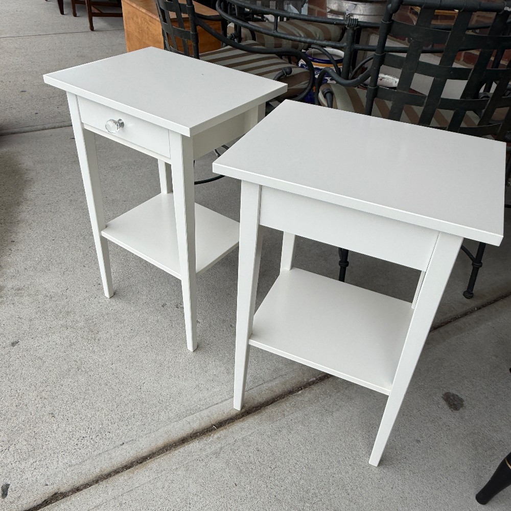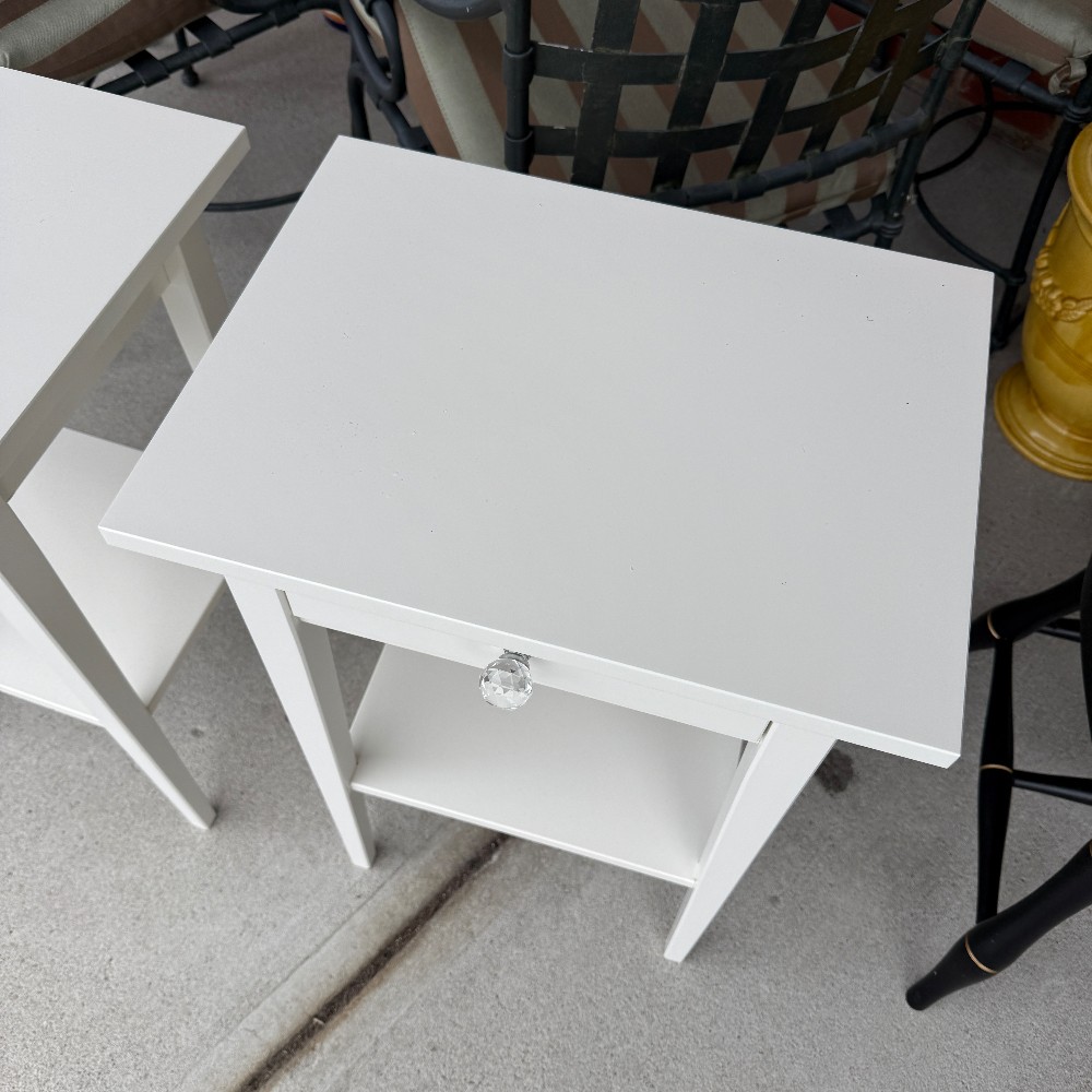 18" x 14" x 27.5" tall, with one drawer each and glass chrome knob