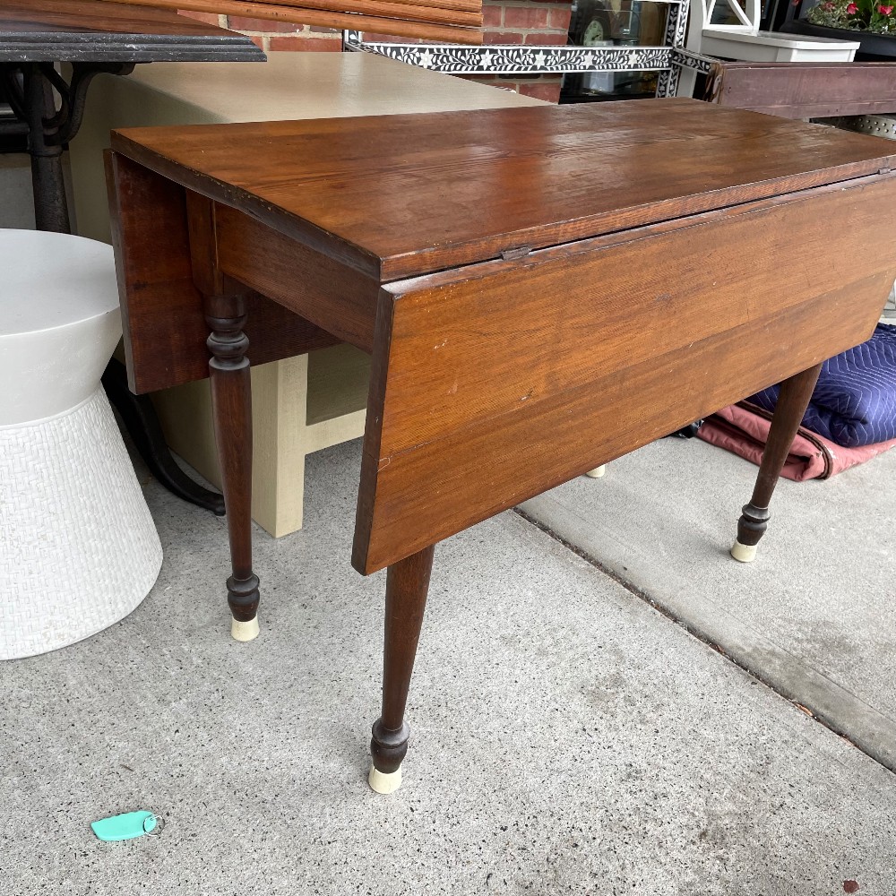 Measuring 41 1/4"L x 19"D x 28 1/4"T. 39" w/ both leaves open. Condition as pictured.