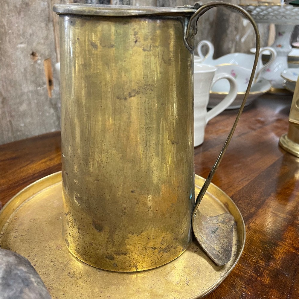 Brass Tray, Pitcher, Fire Starter, Candle Snuffer. Condition as pictured. 11"T x 7 1/4"W
