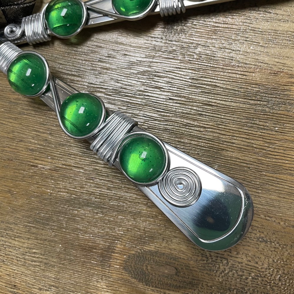 green glass beaded handle, l. 10"