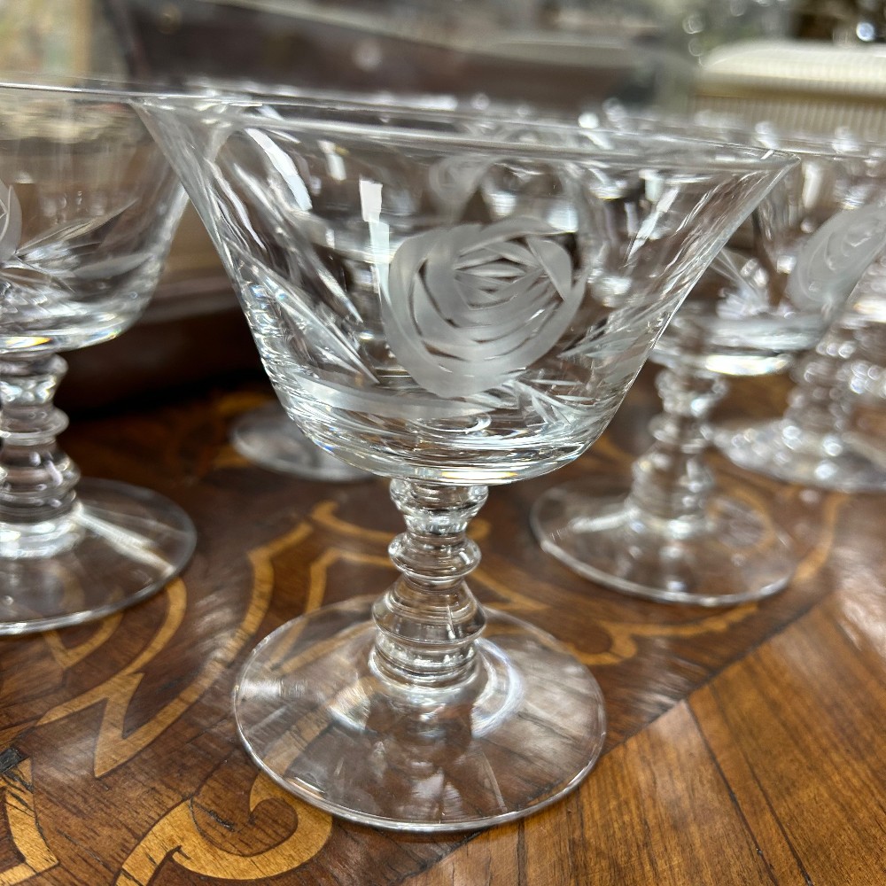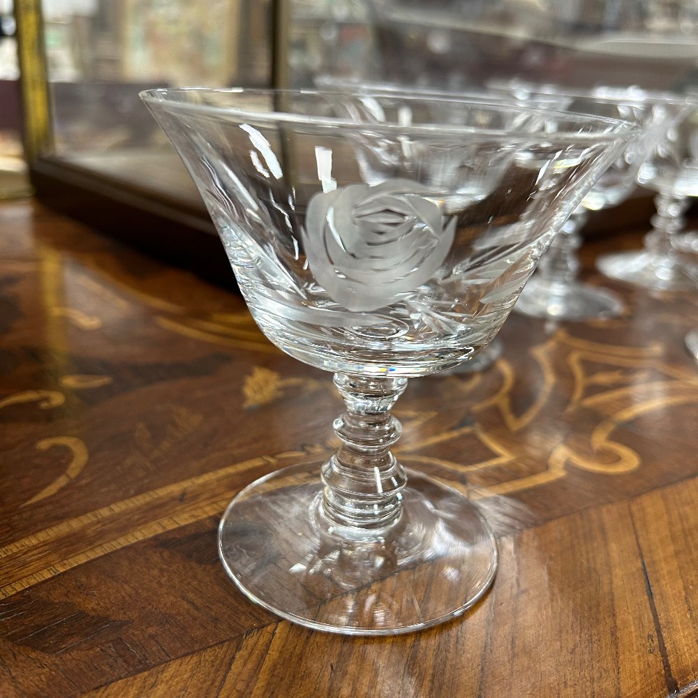 Home / Glasses / 7752-3 Fostoria Rose Etched Crystal Coupe/Sherbert Glasses (8)