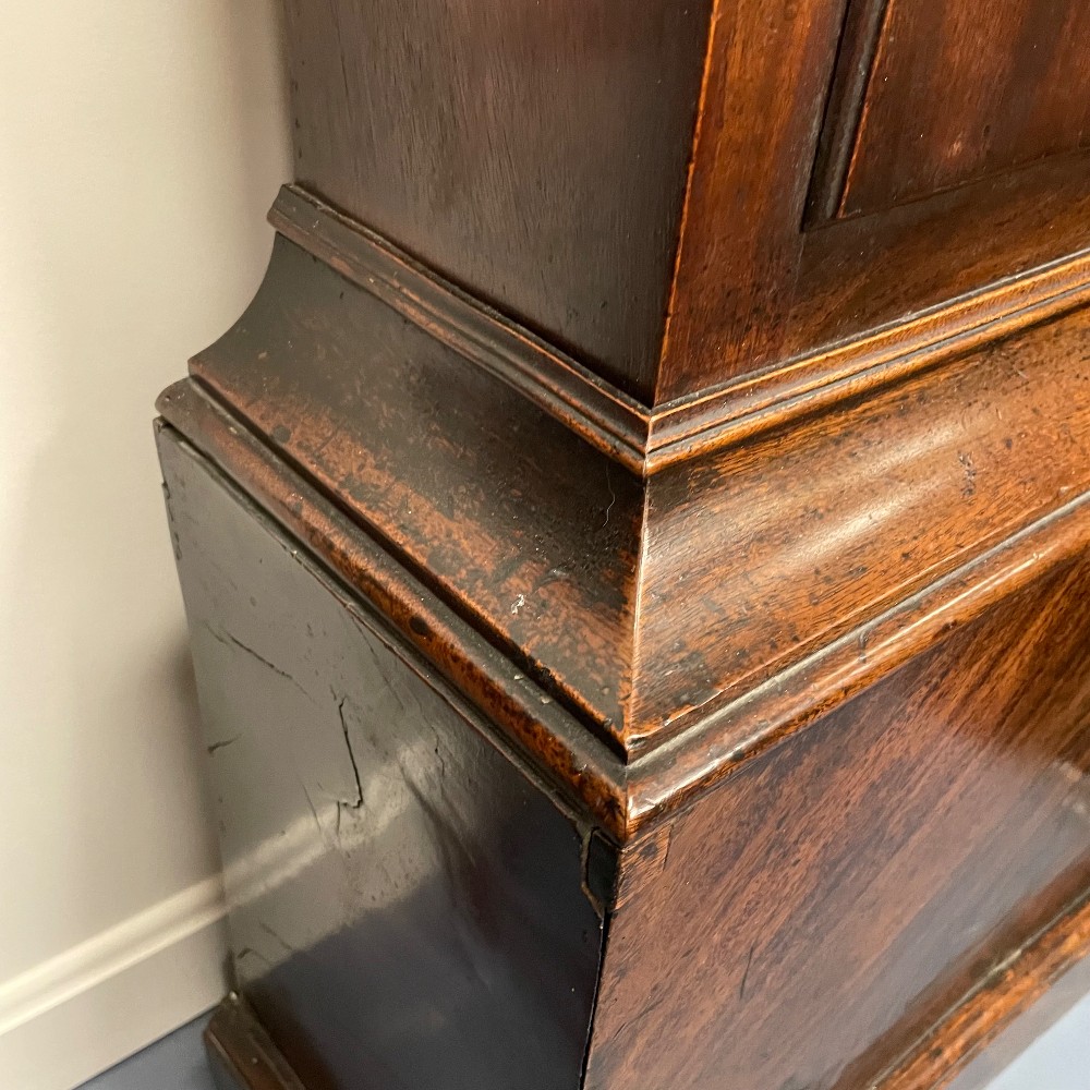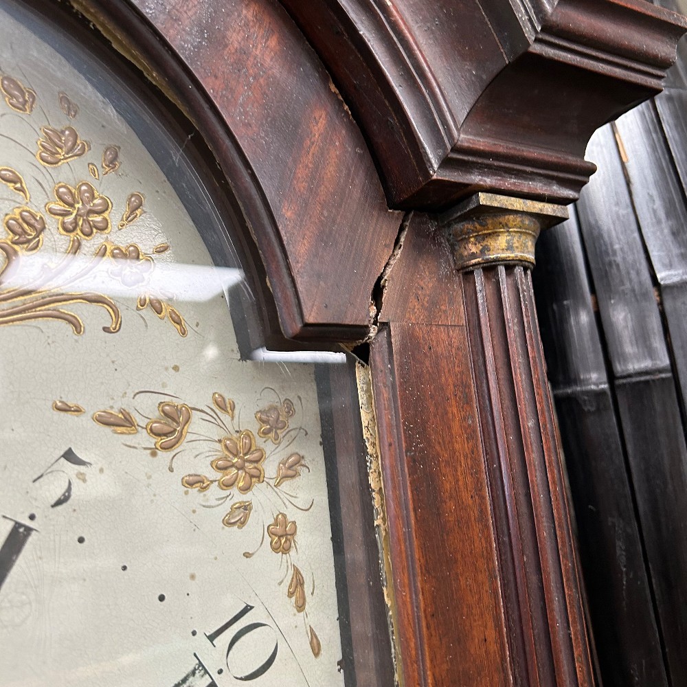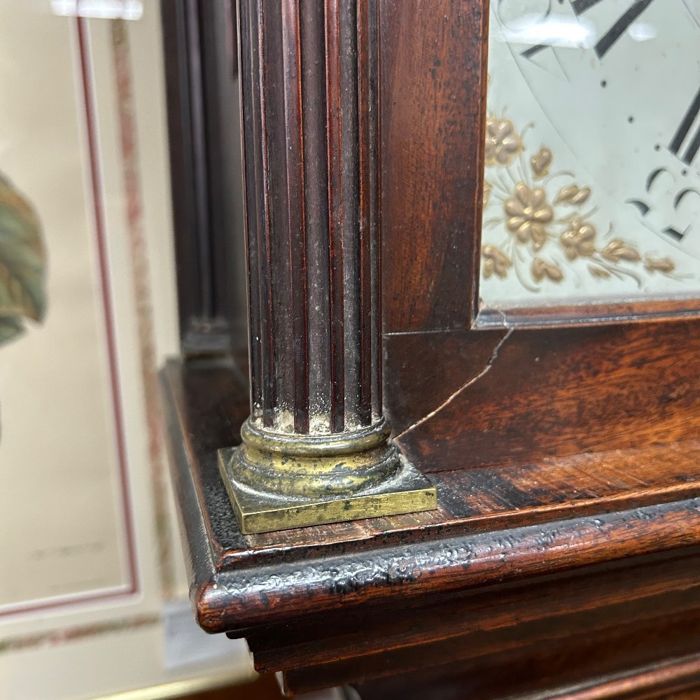 maker Edward Arnold 1765-1785, needs some repair, with key, h. 92", w. 18 1/4", d. 9 1/4"
