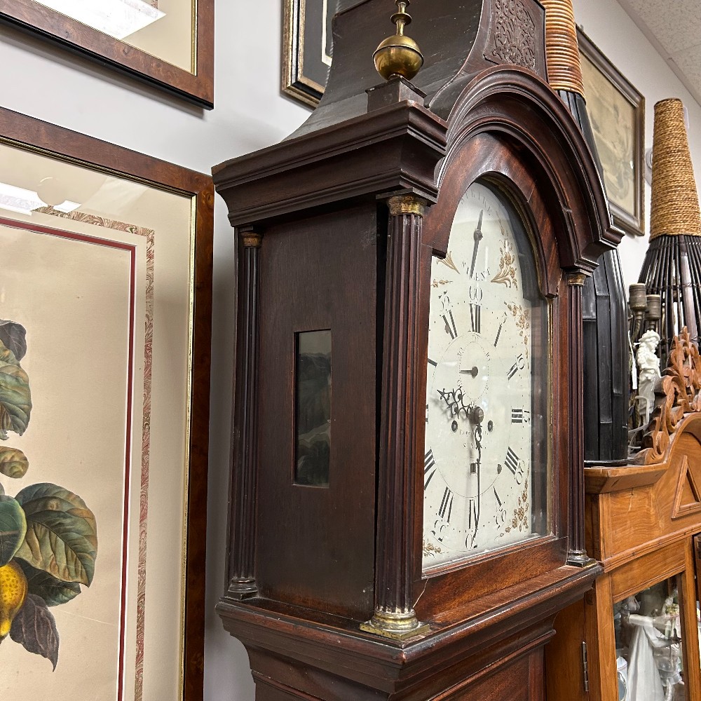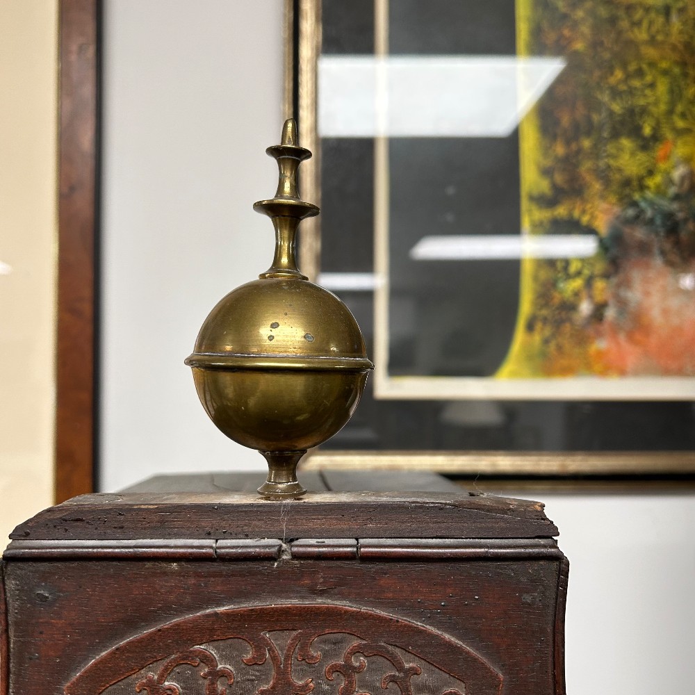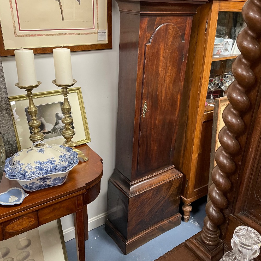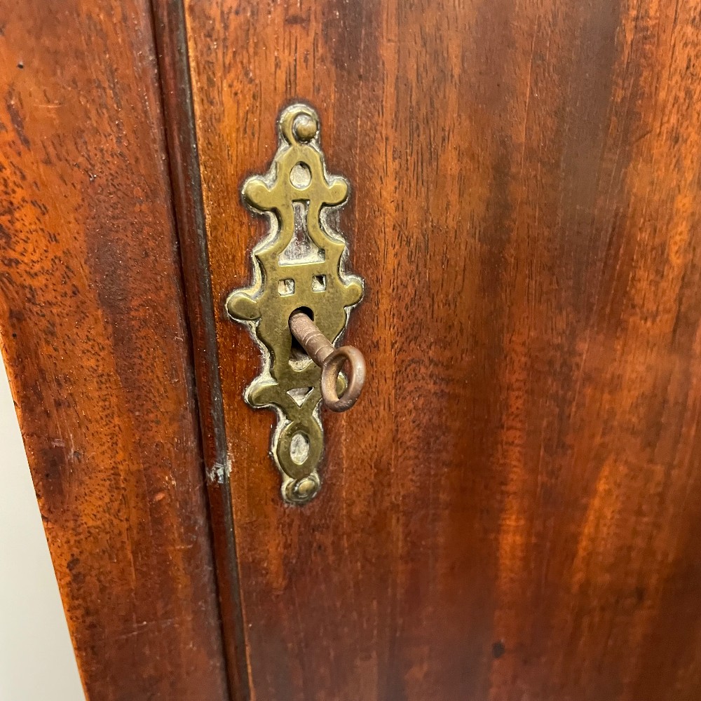 maker Edward Arnold 1765-1785, needs some repair, with key, h. 92", w. 18 1/4", d. 9 1/4"