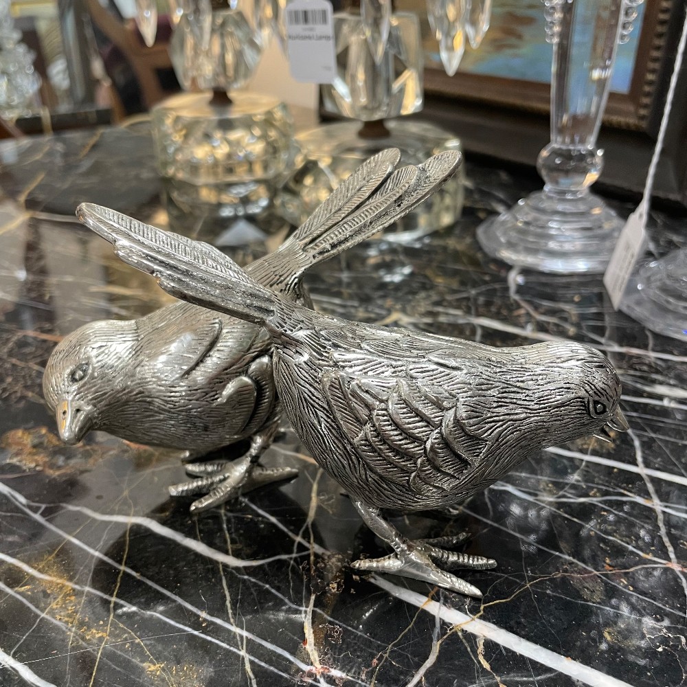 Silver finished metal. Measuring 4 1/2"L x 3 1/2"T x 2"D