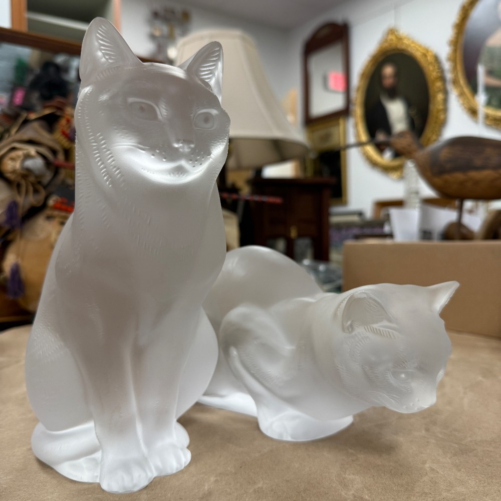 Upright & Crouching, 8" tall and 10" long, 5" wide (one with small chip, not seen)