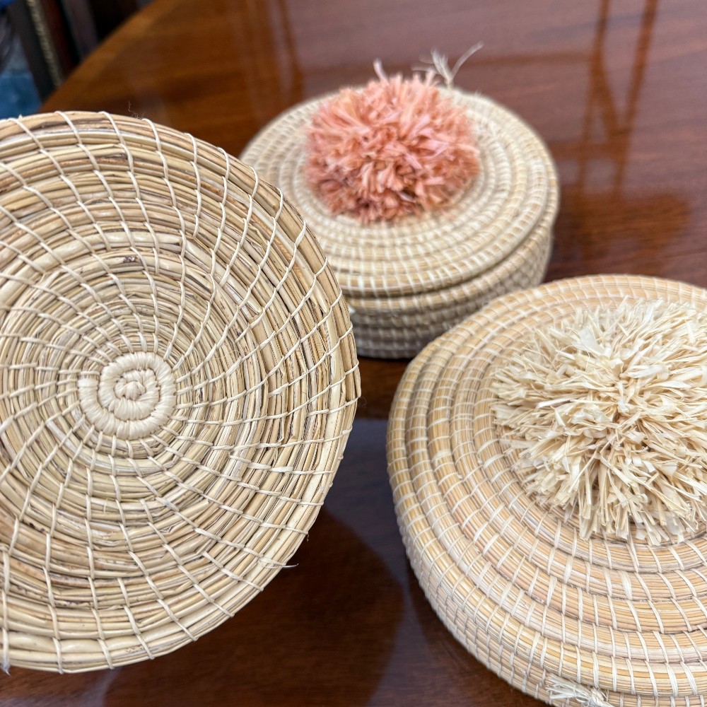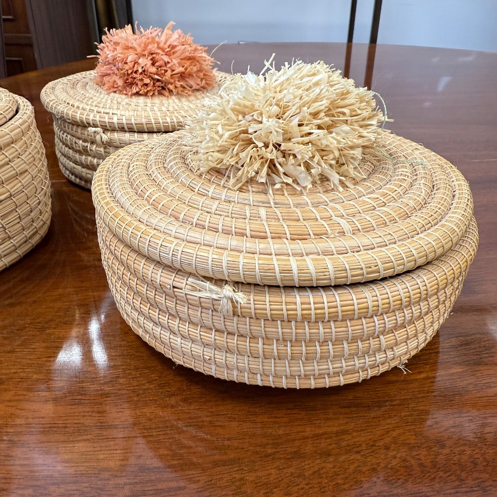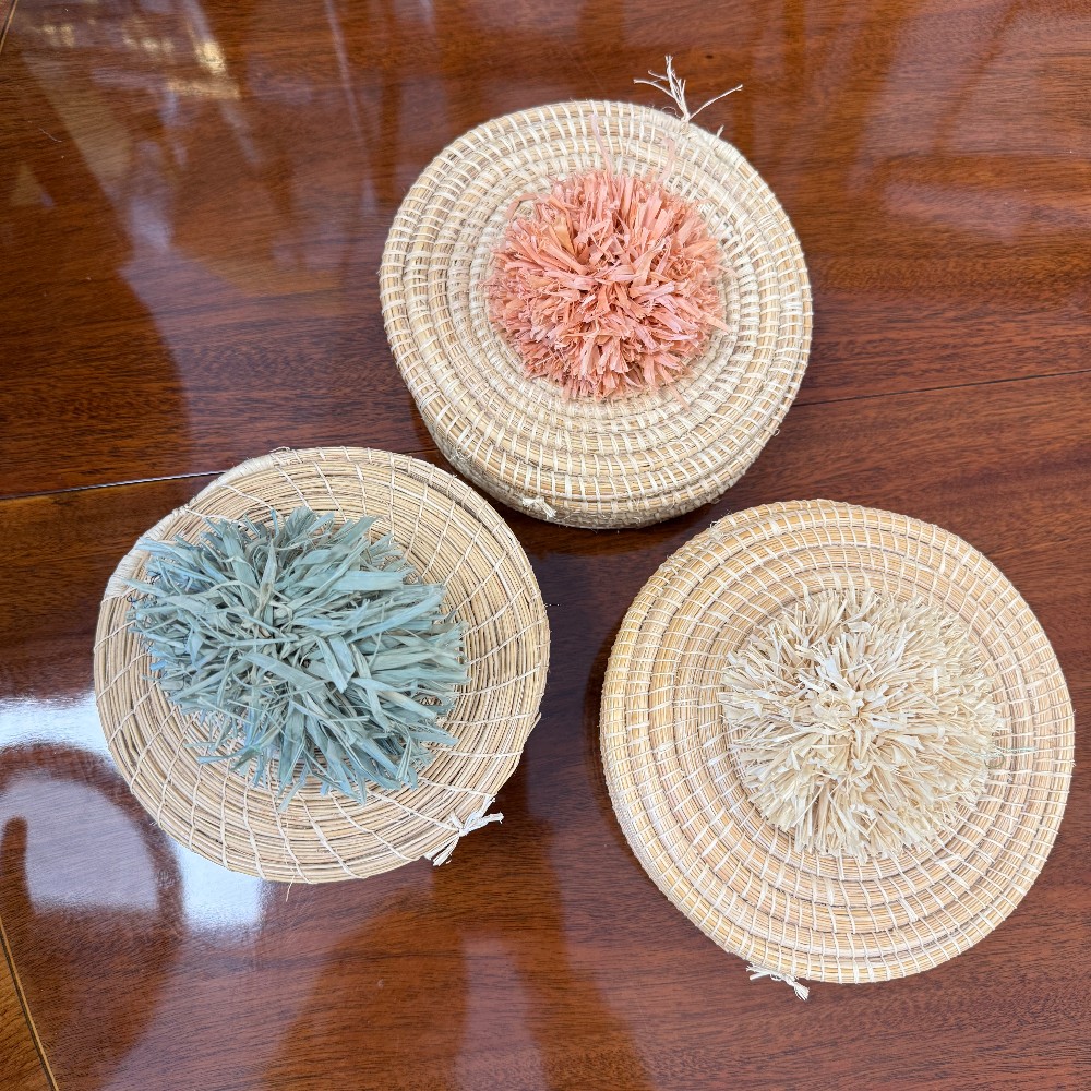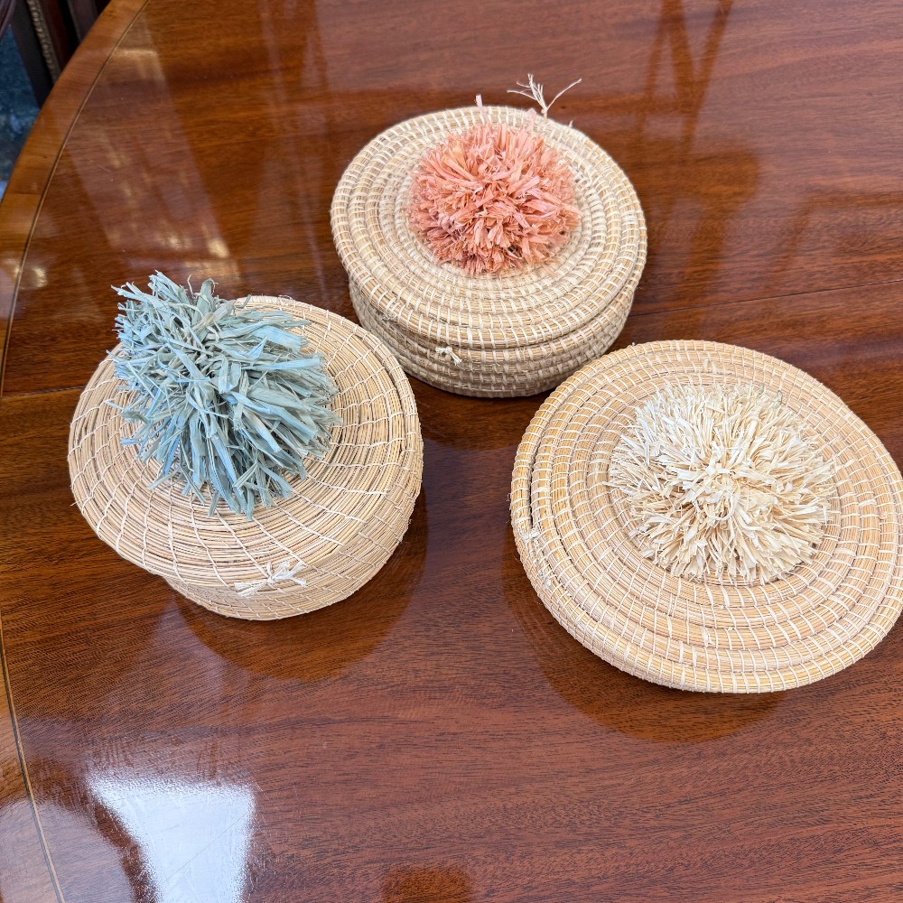 7" d, 7" d, 6" d and 3.5" tall with lids