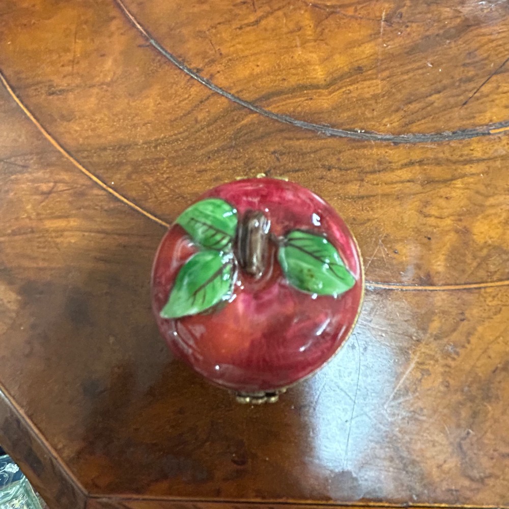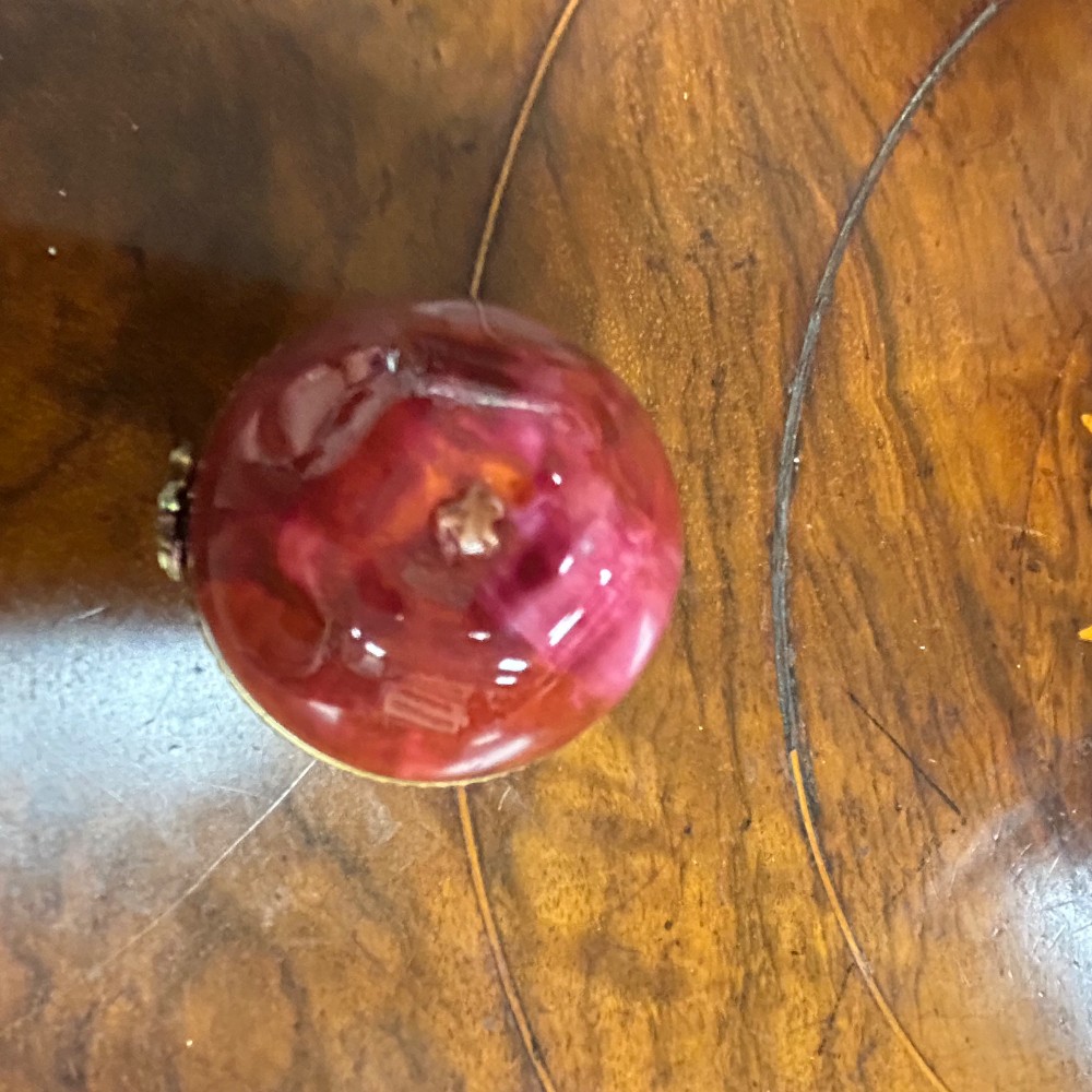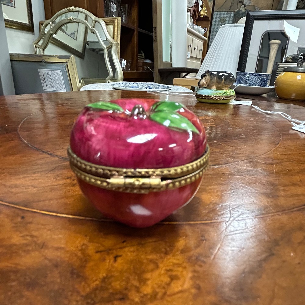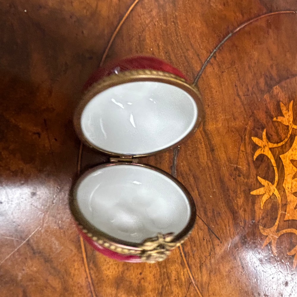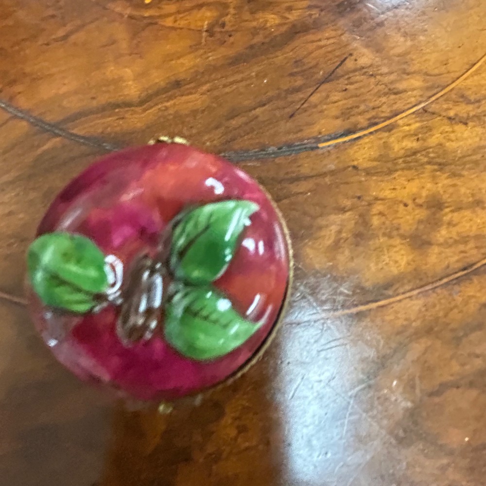 Hand painted, porcelain w/ flower clasp. Measuring 1 1/2" x 1 1/2"T