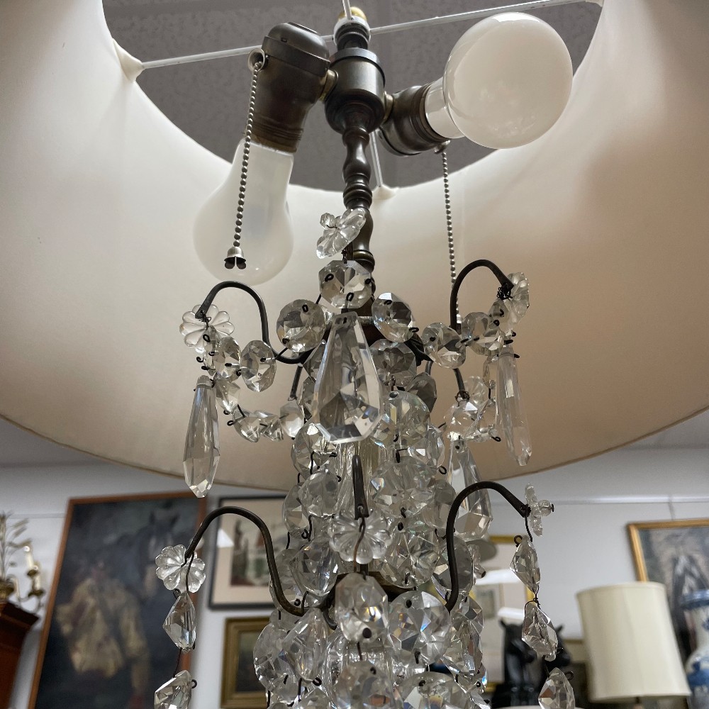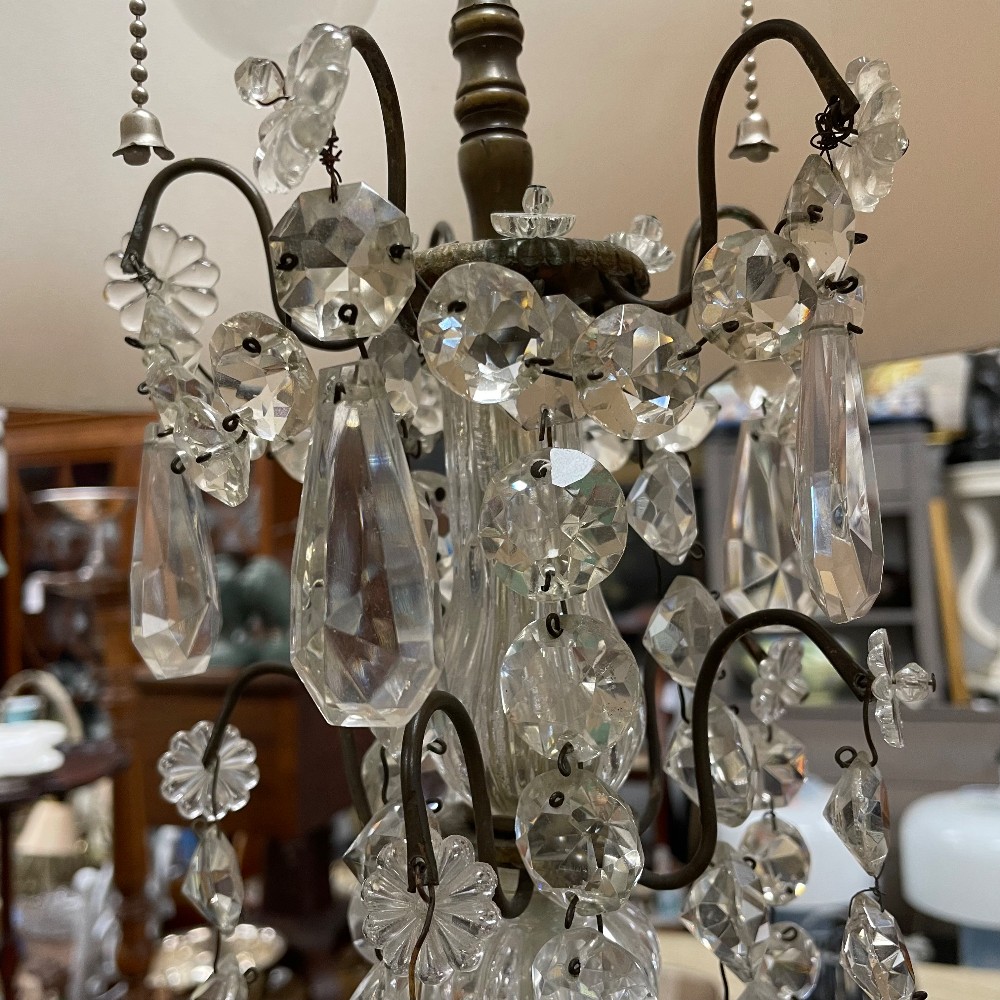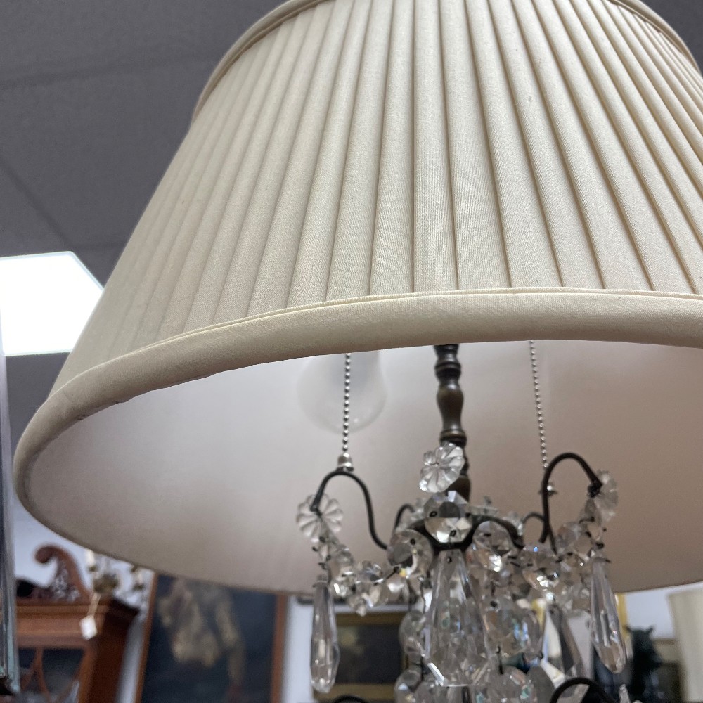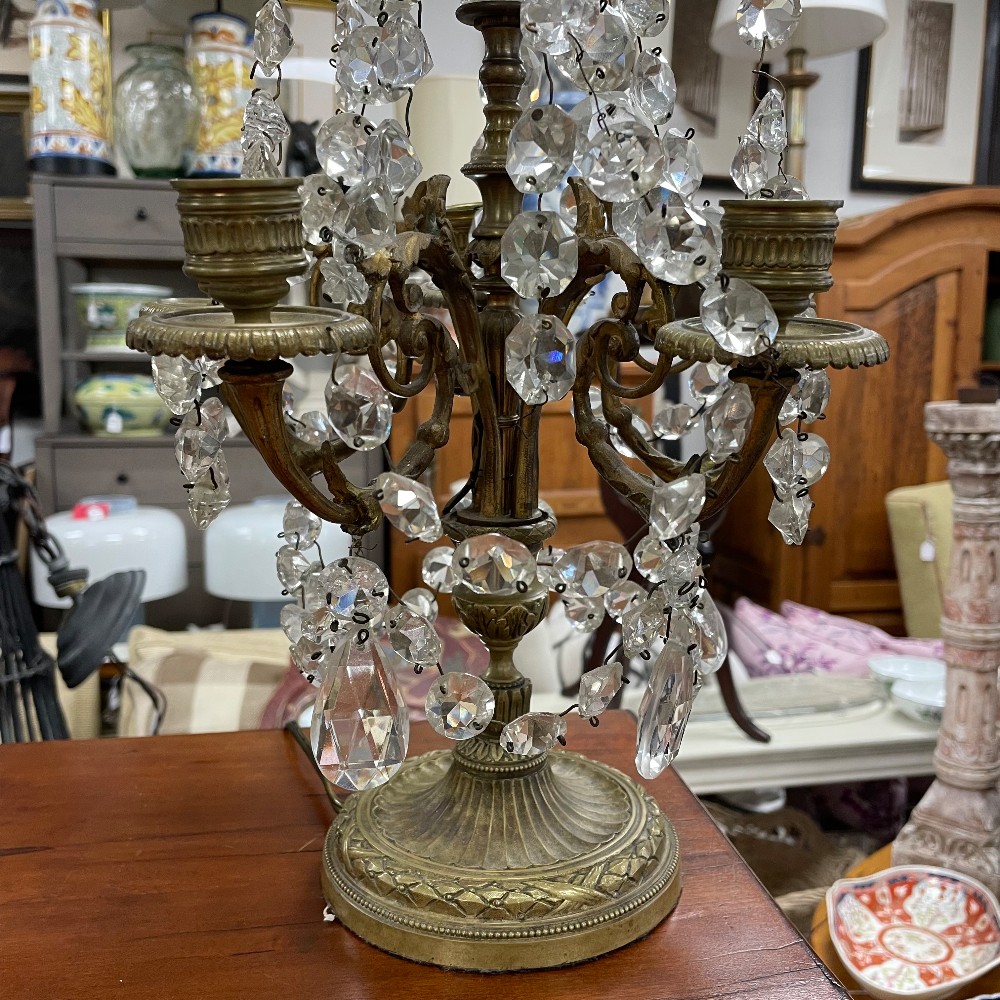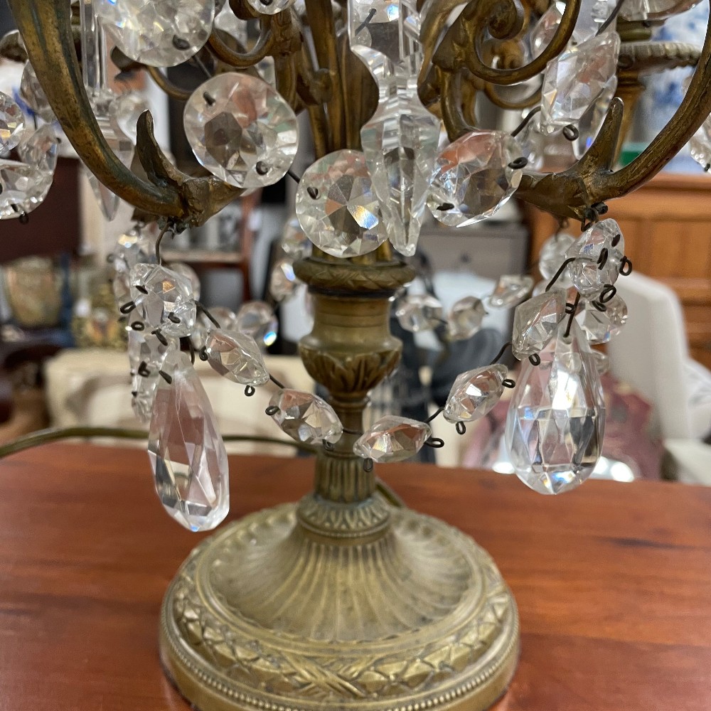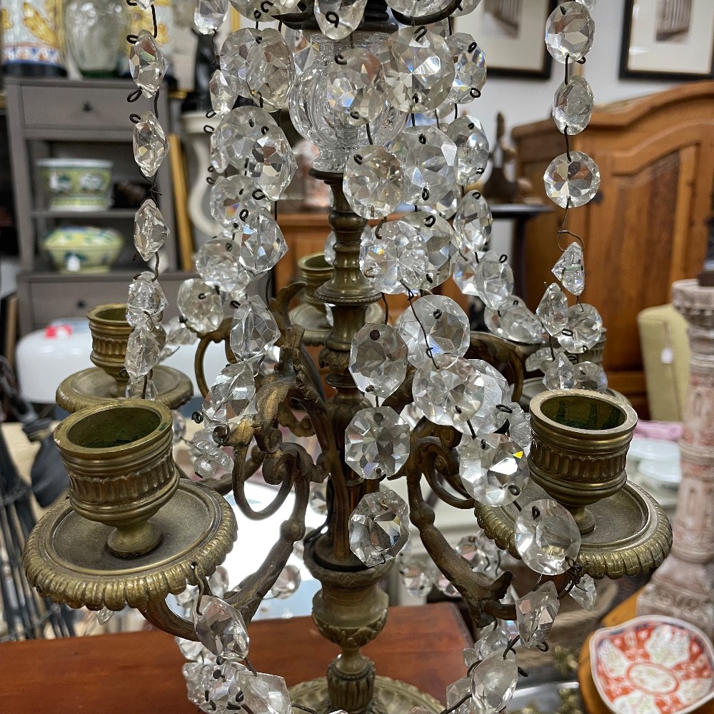 5 candle holders w/ 2 lights. Measuring 27"T x 10 1/2"D. 16" shade width