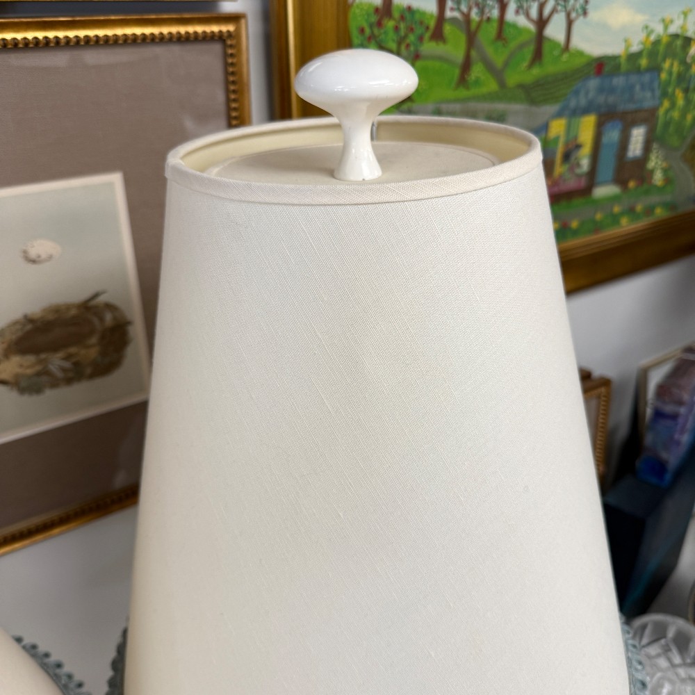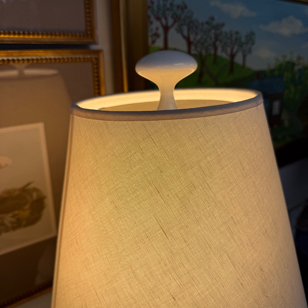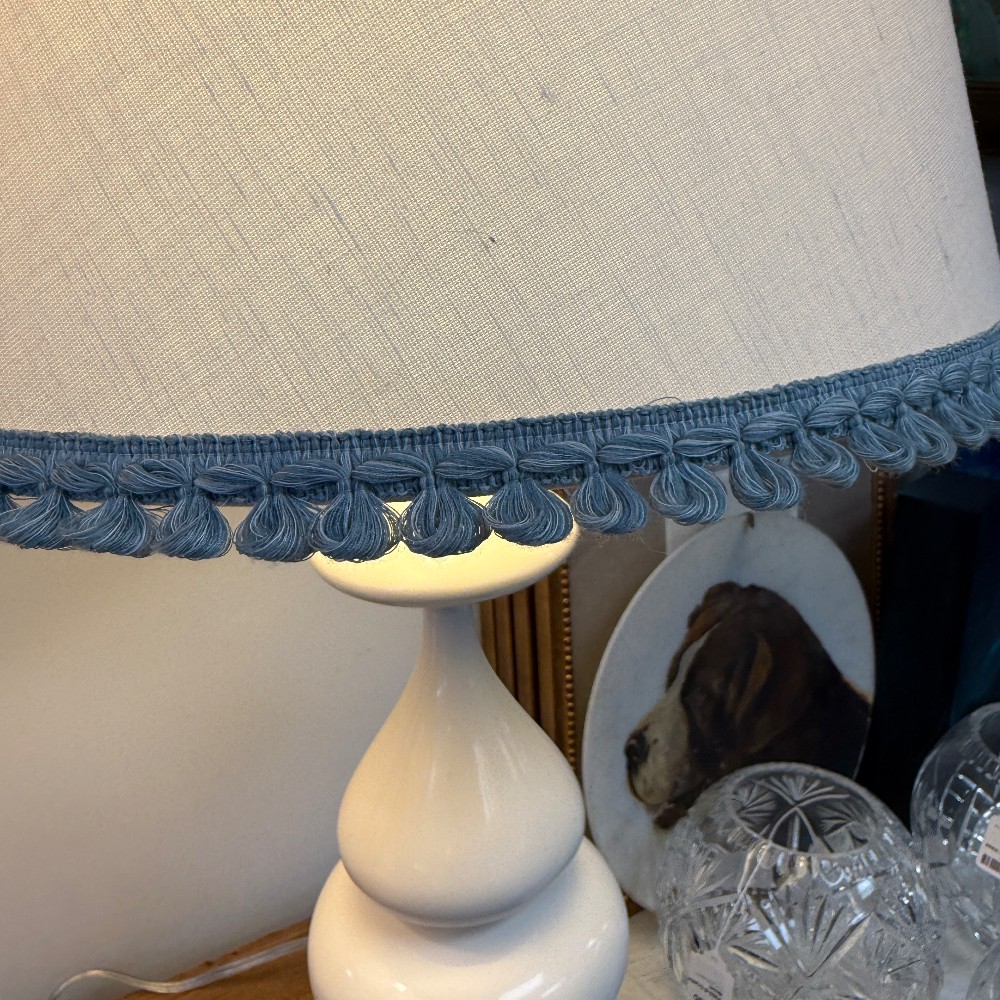with decorator shades, blue trim 34" tall, 6.5" base - light option dimming