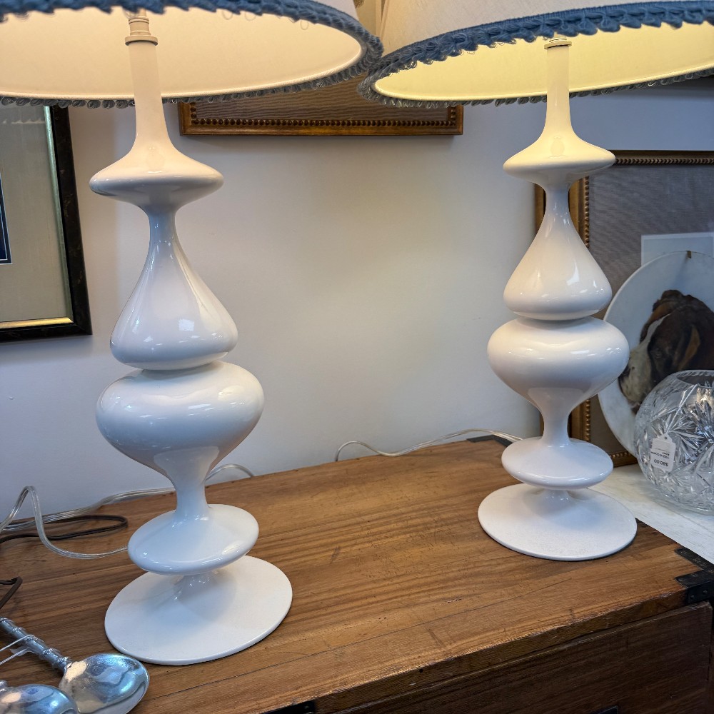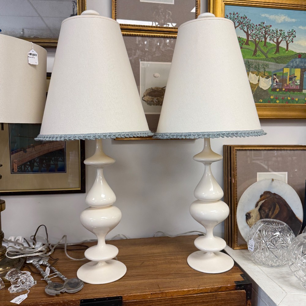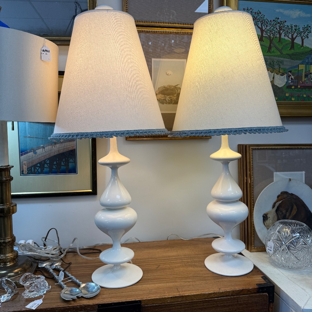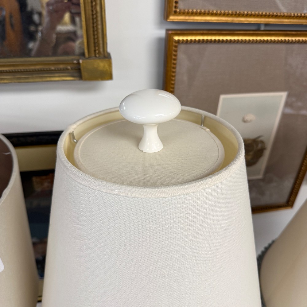 with decorator shades, blue trim 34" tall, 6.5" base - light option dimming