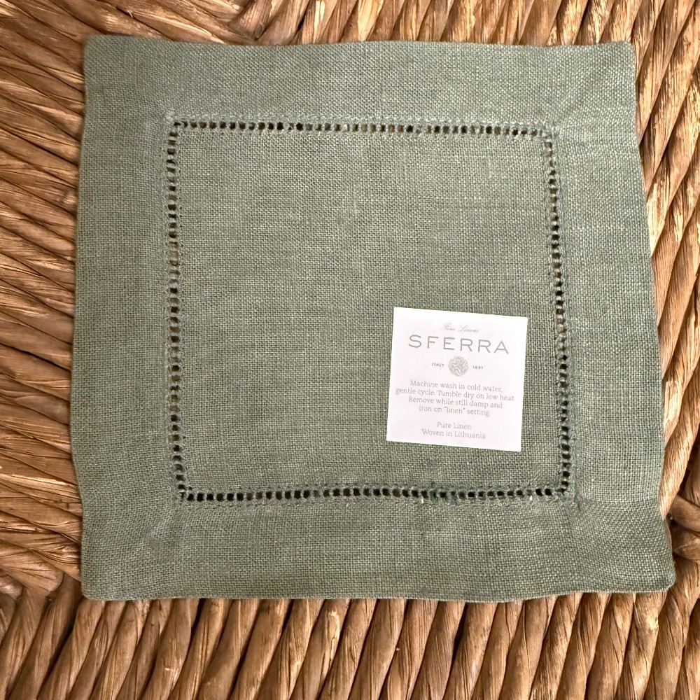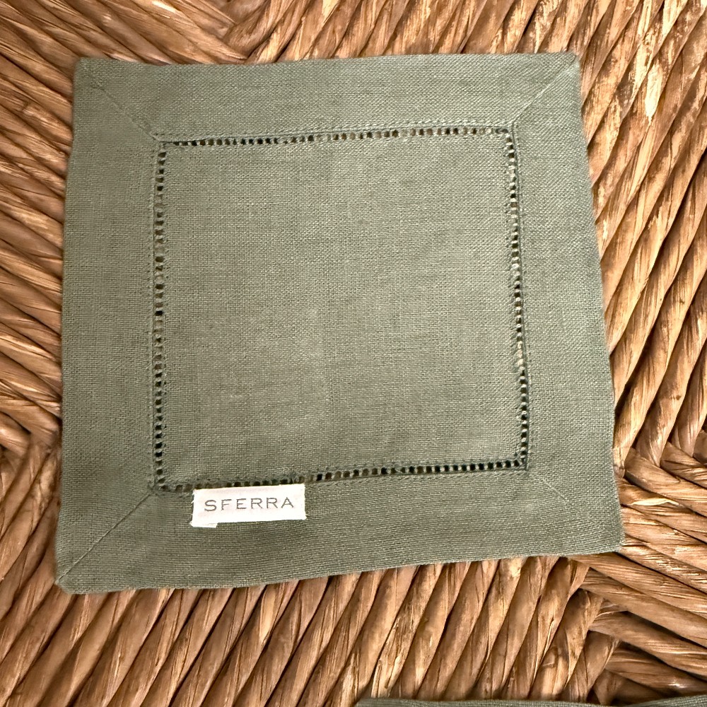 each measuring, 6" x 6" green linen by SFFRRA