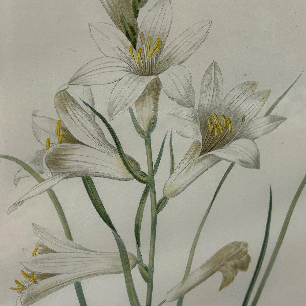 Well framed, from early 19th C. Limited edition book Les Lilliaces. Measuring 28" w x 34" h