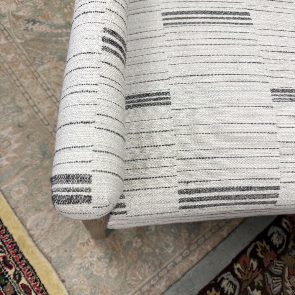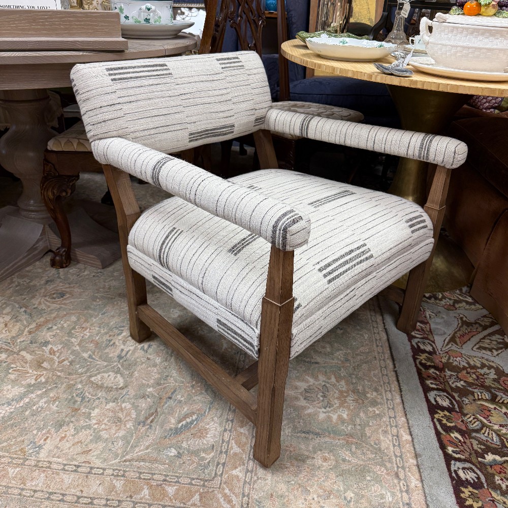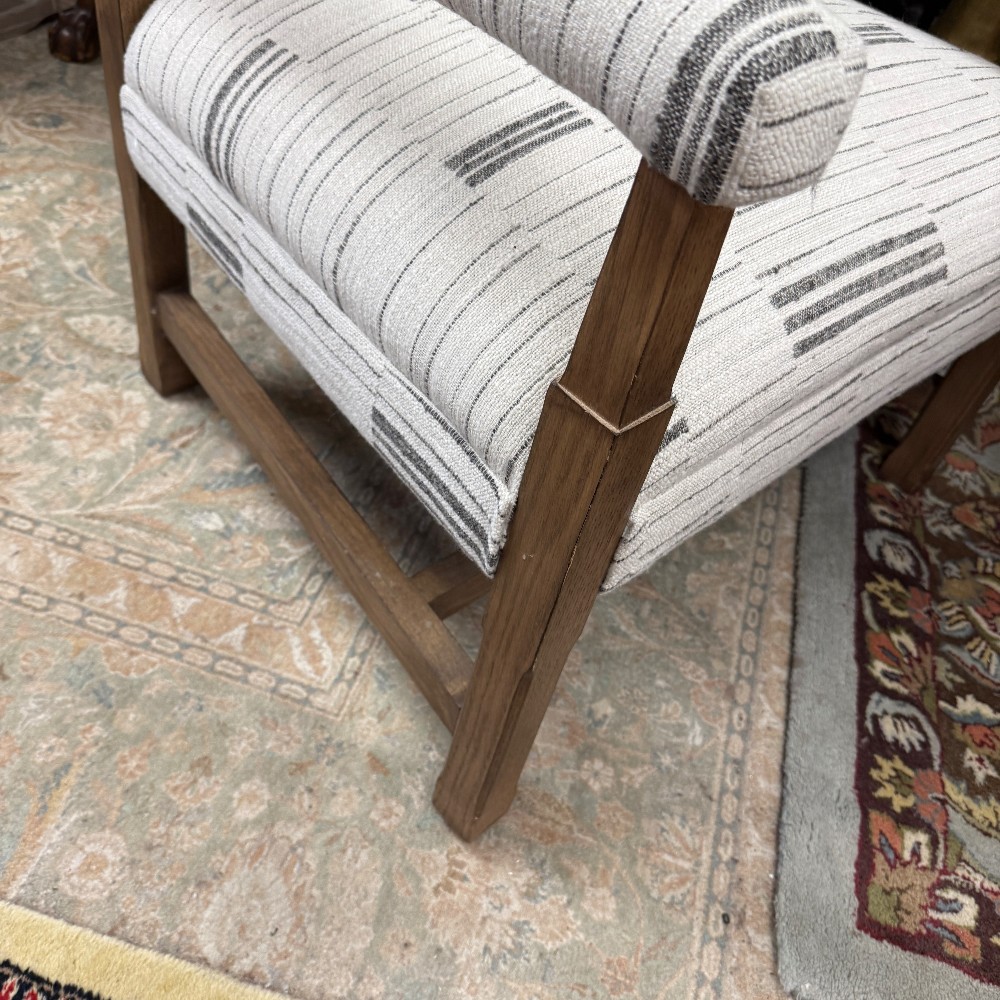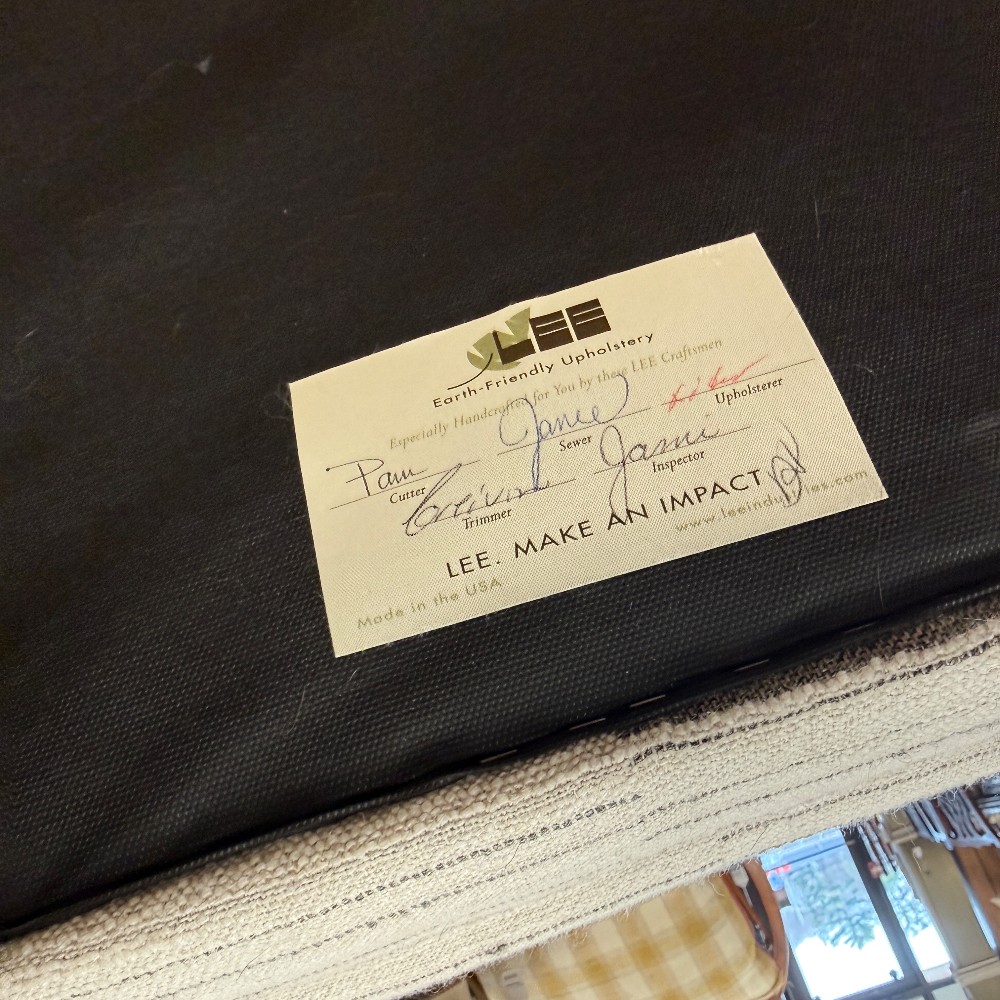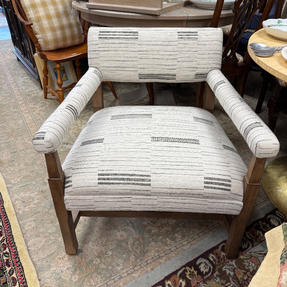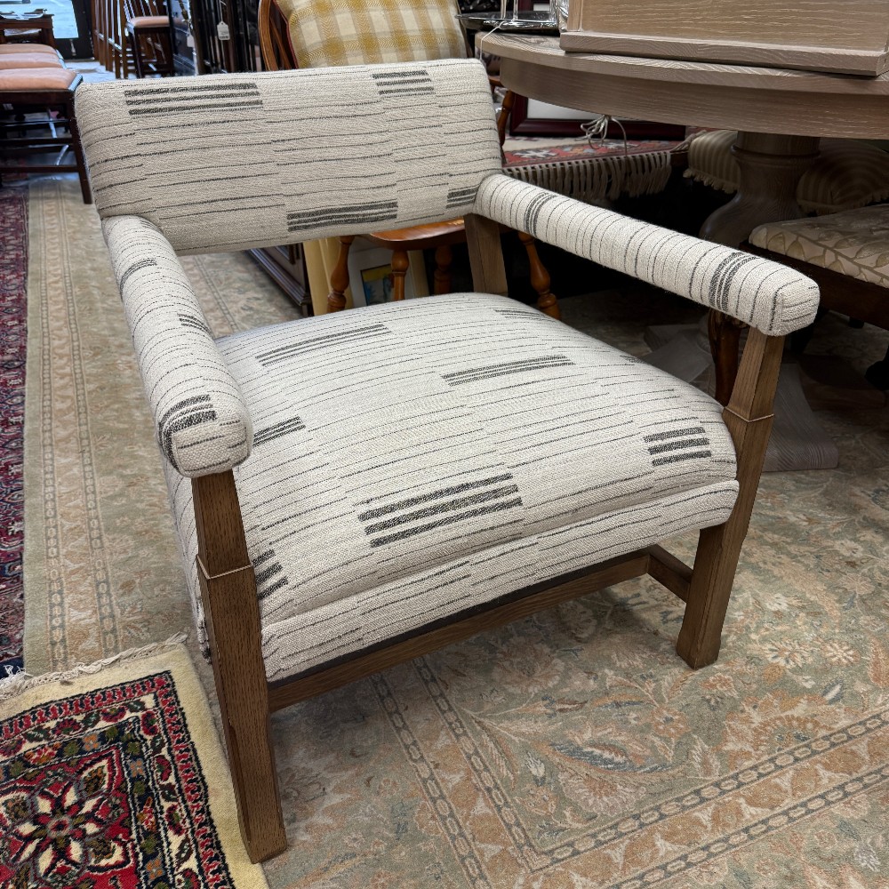 17" seat height, 28" x 29" deep and 30" h (seat depth 23") - wool & wood