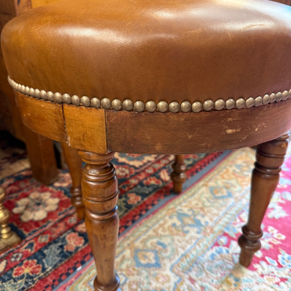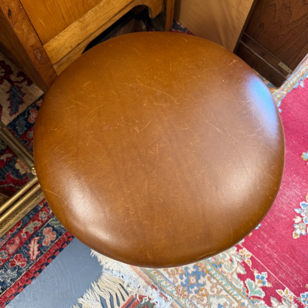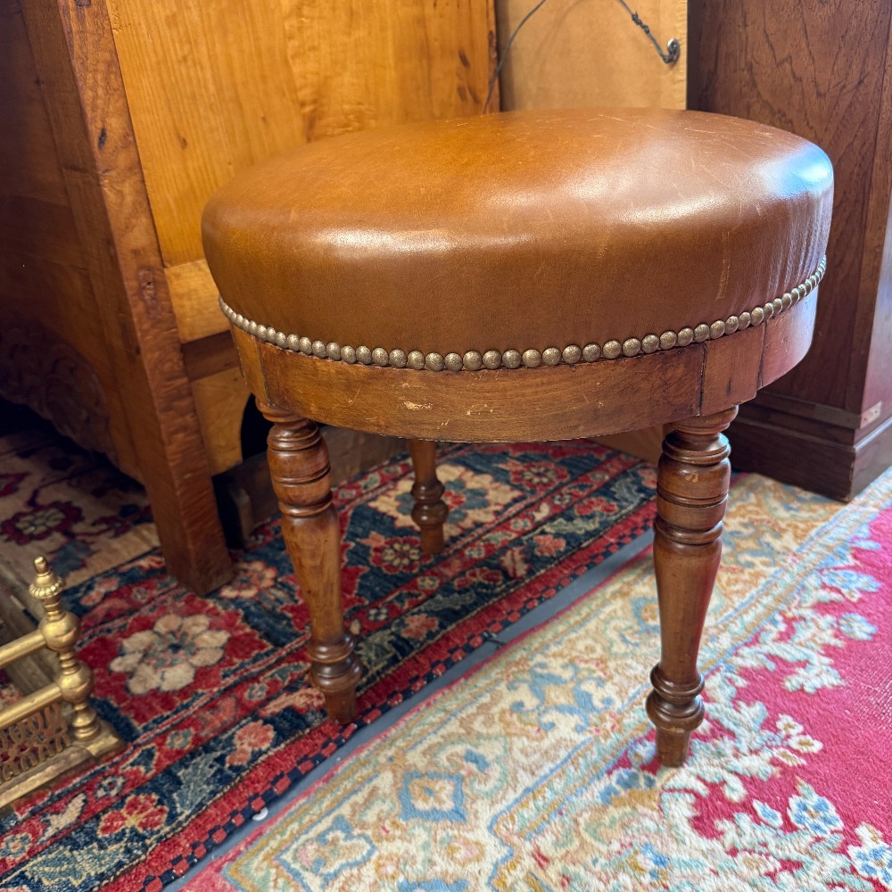 leather, brass brads and mahogany 18" tall x 18" D