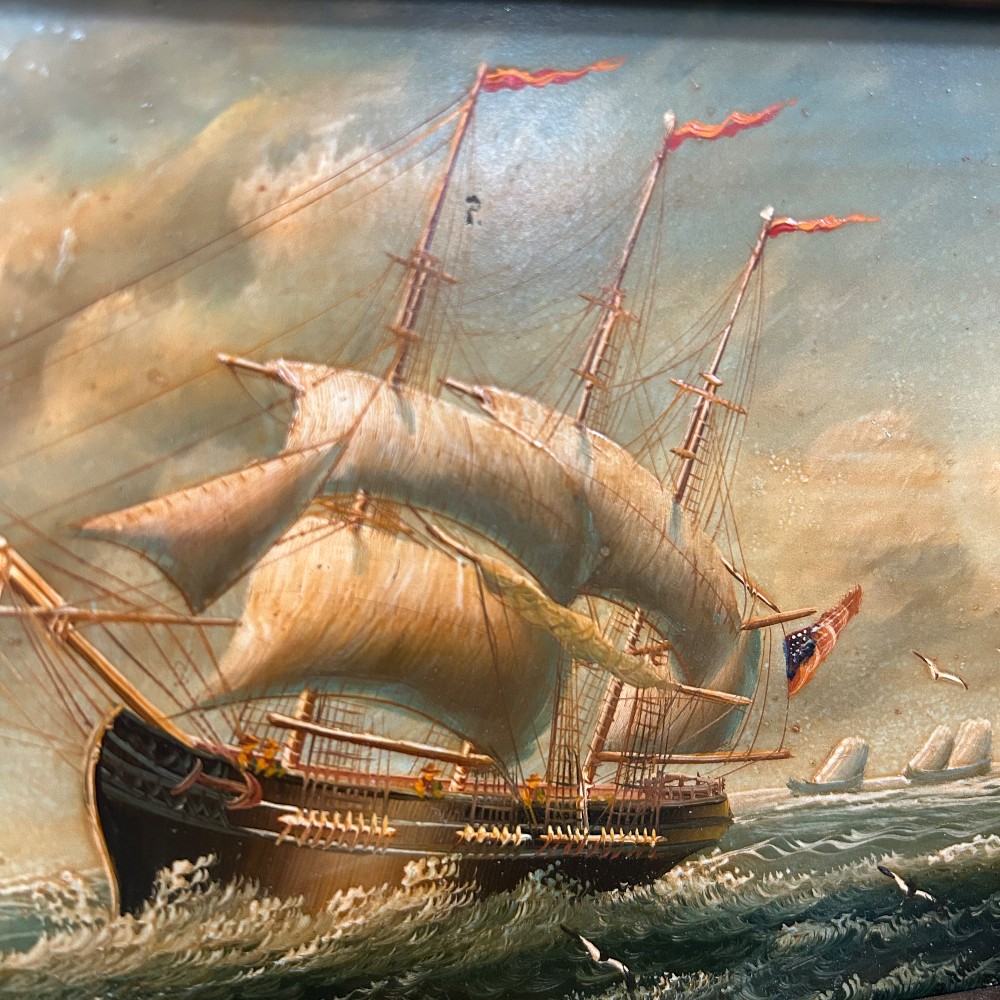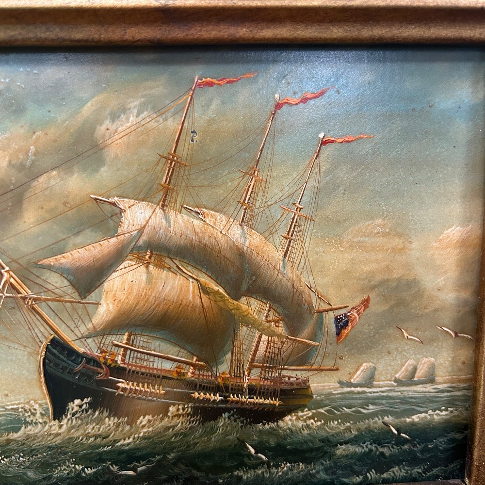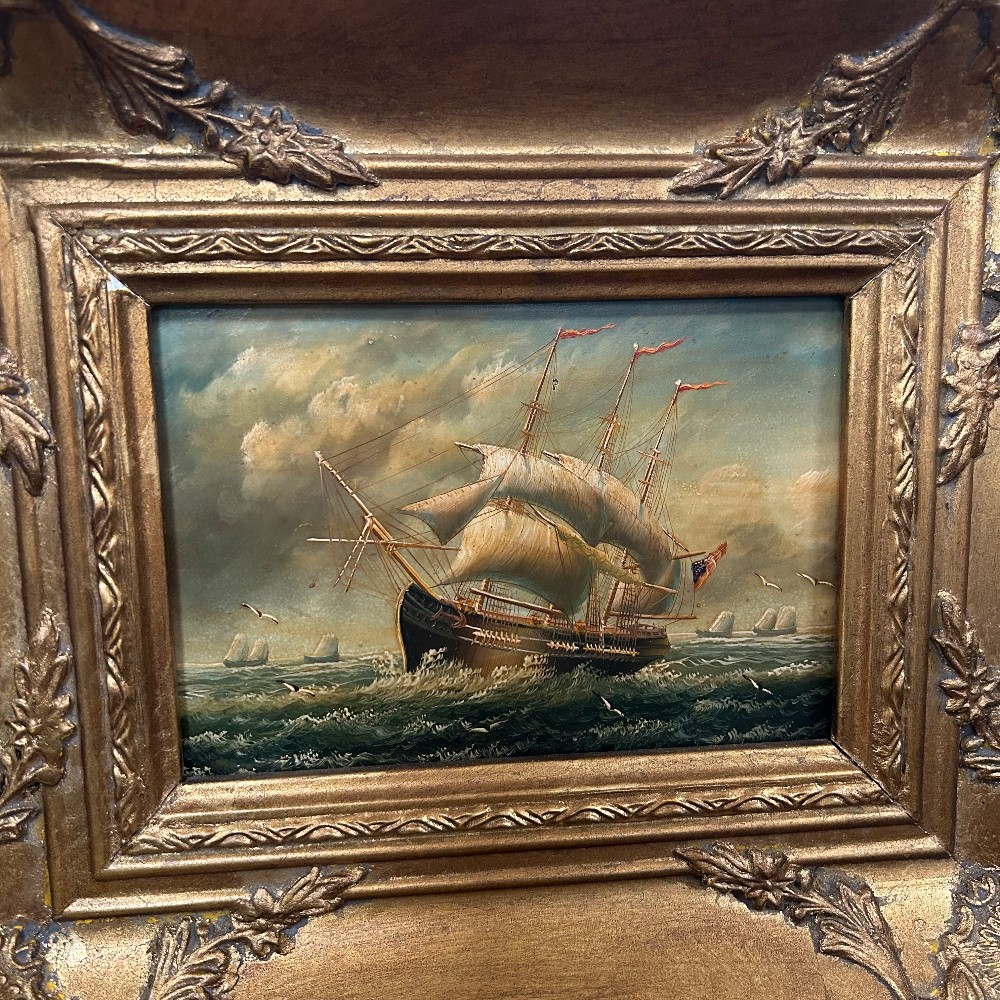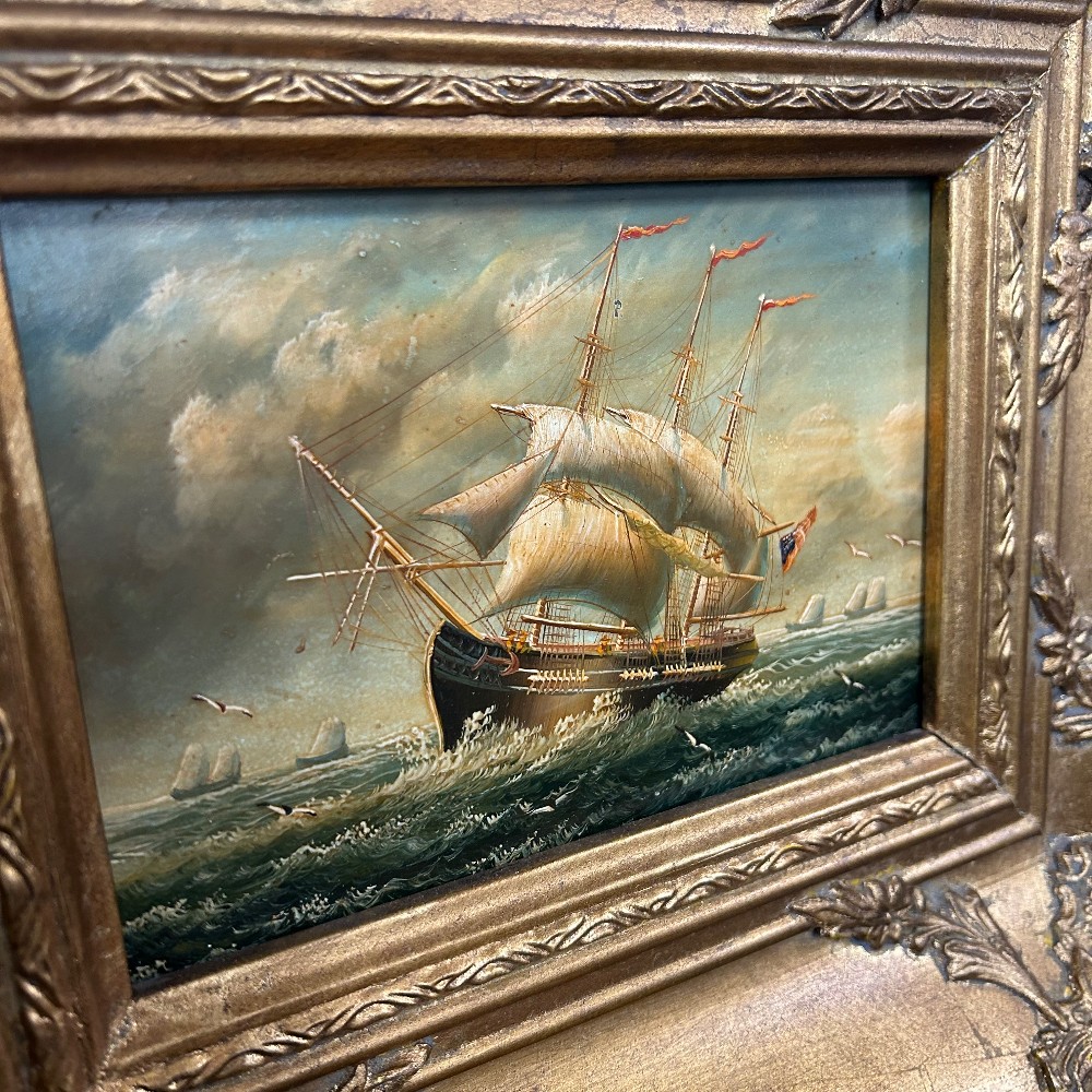 Home / Paintings / 7699-7 Framed Original Oil on Board, Ship on Choppy Sea