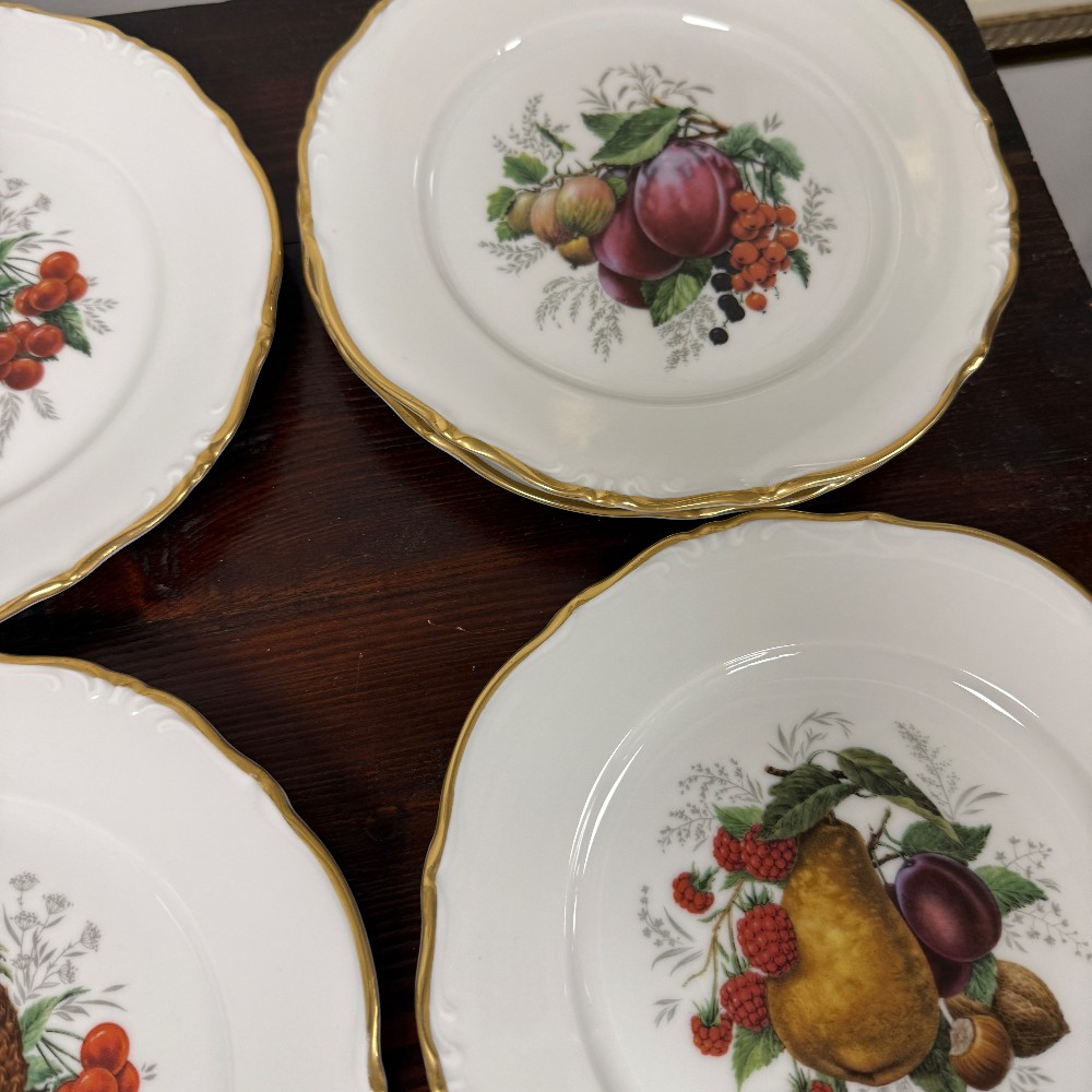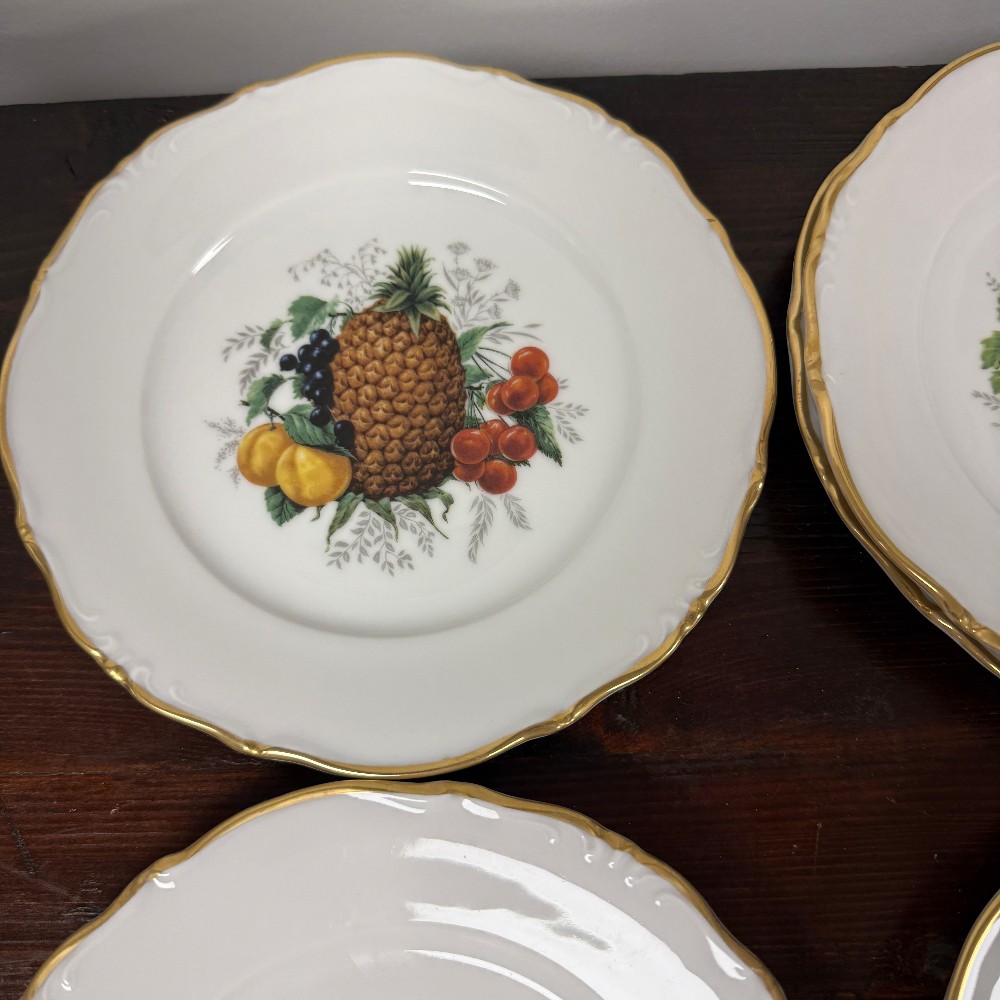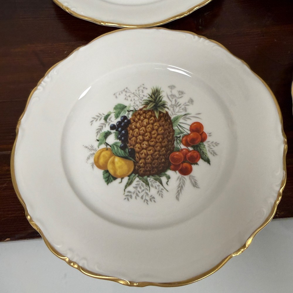 fruit decor, 7.5" D plates and platter is 12" D