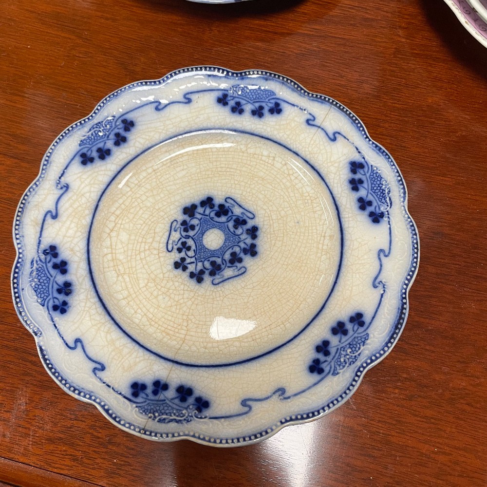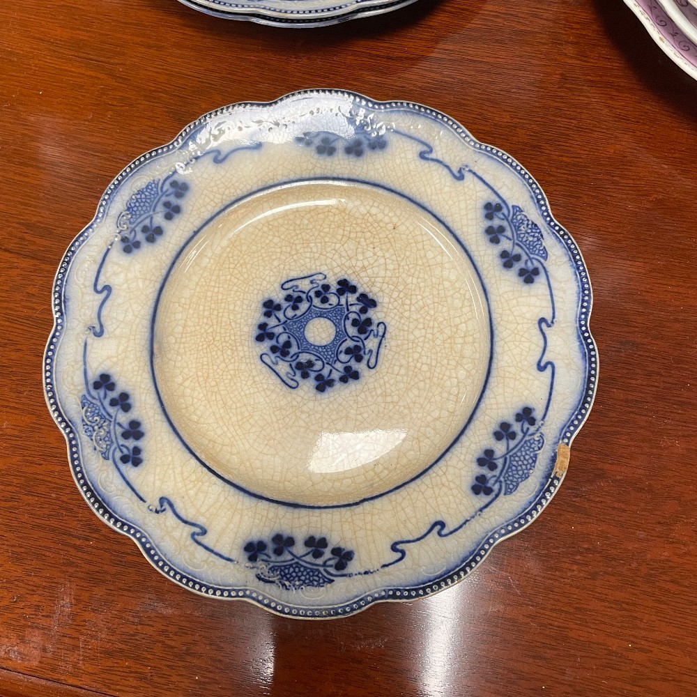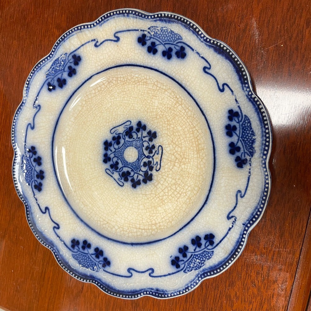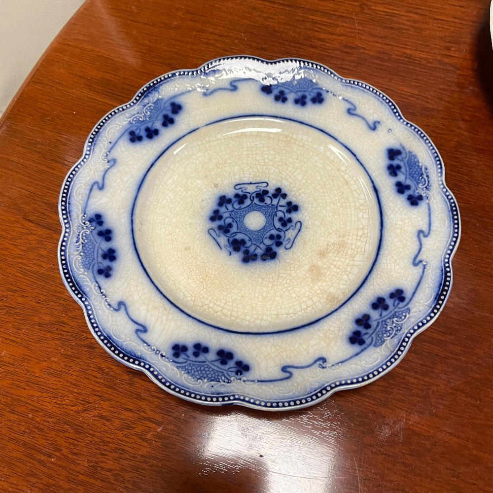 by Grindley, Lorne/flow blue, diameter 8", one plate has a chip