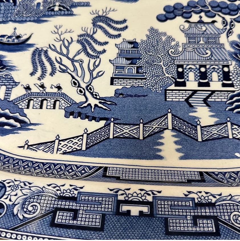 Extra large blue willow turkey platter by William Sonoma, measuring 19” x 14”