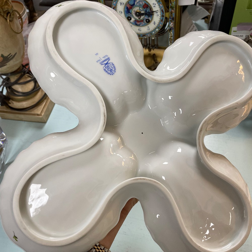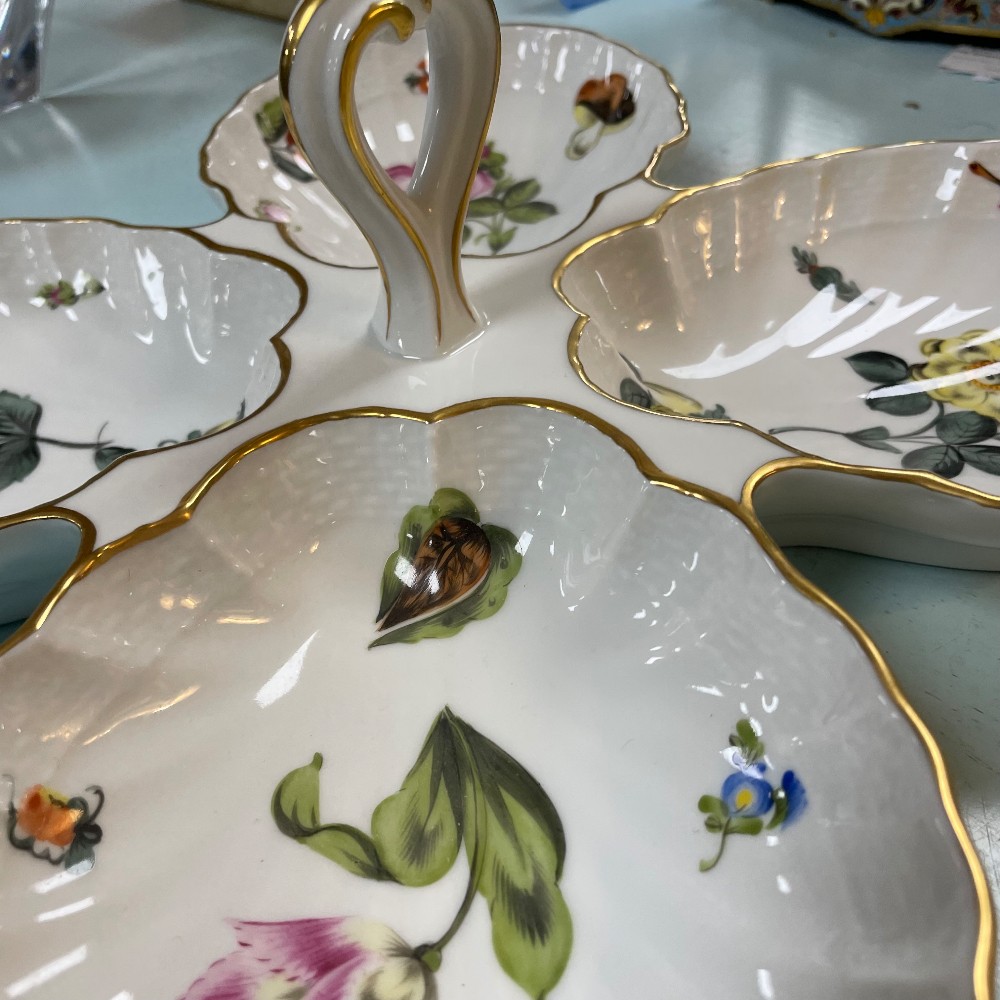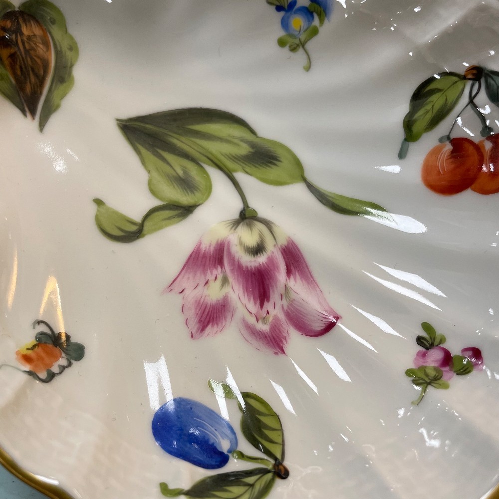 Measuring 11"D x 3 1/2"T. Beautifully painted flowers & fruit. Condition as pictured