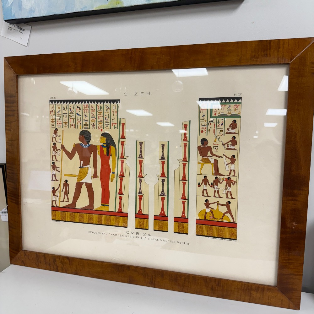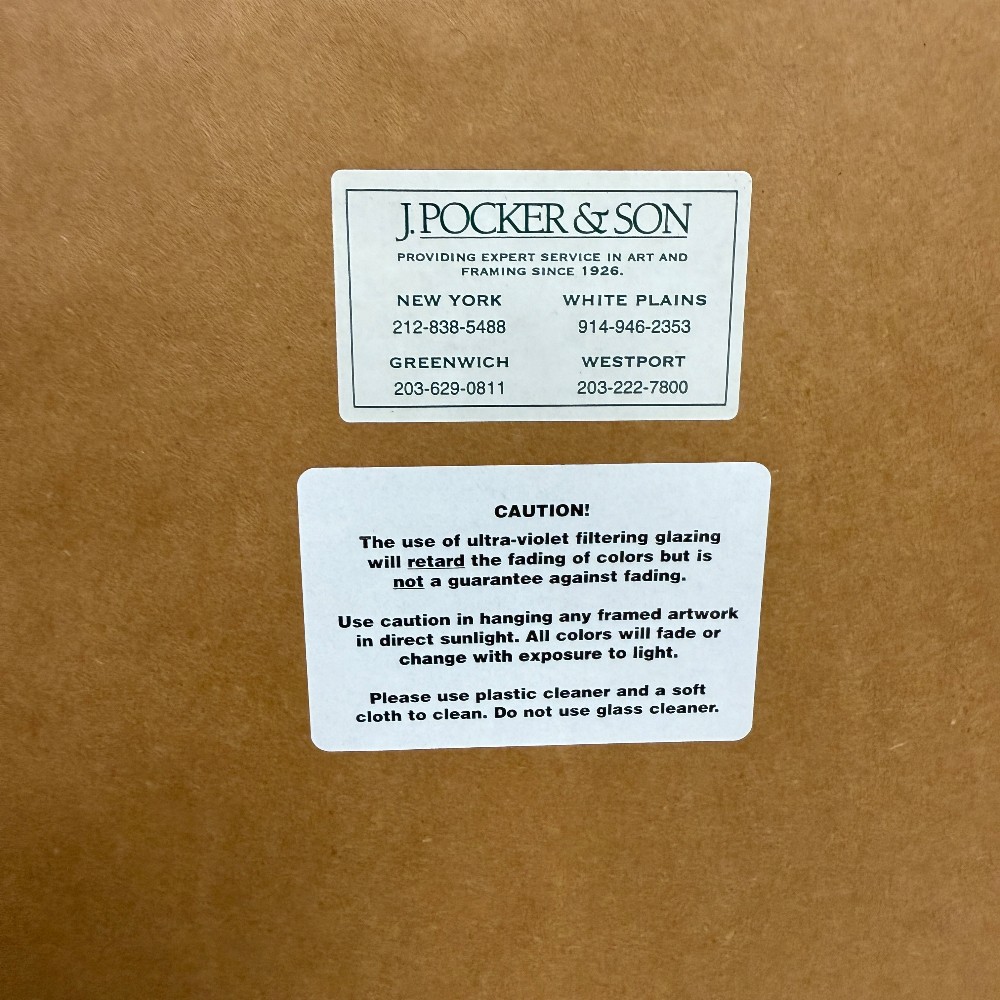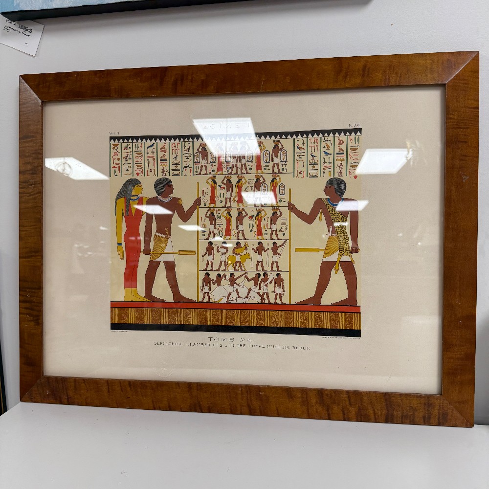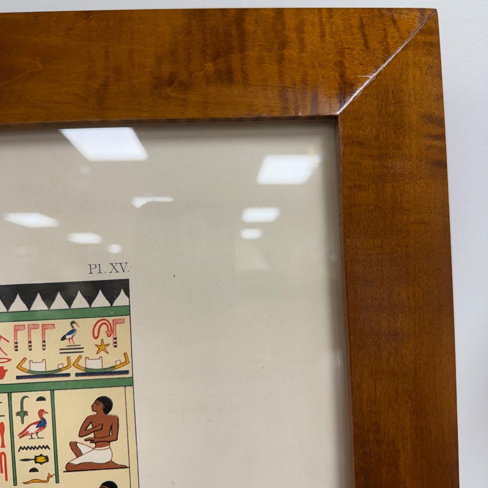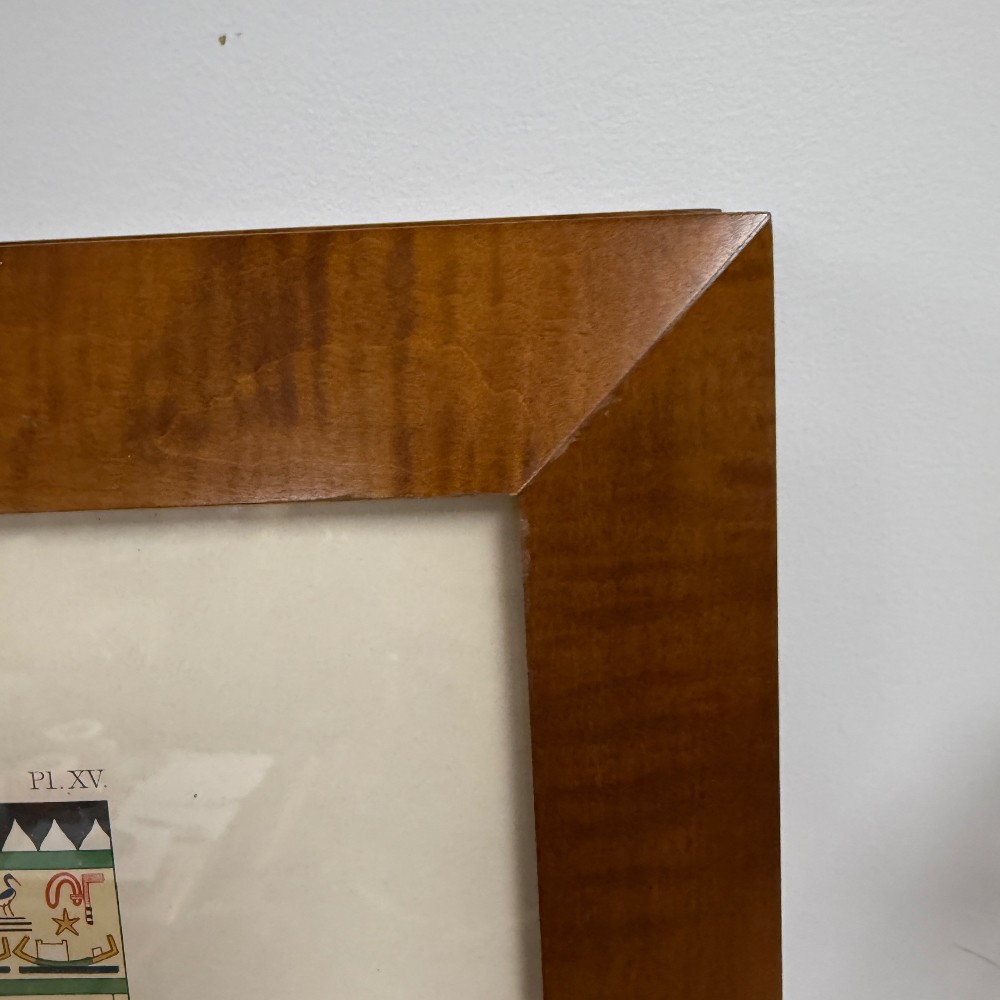 series of three, measuring 29" x 22" stamped, tiger maple frames