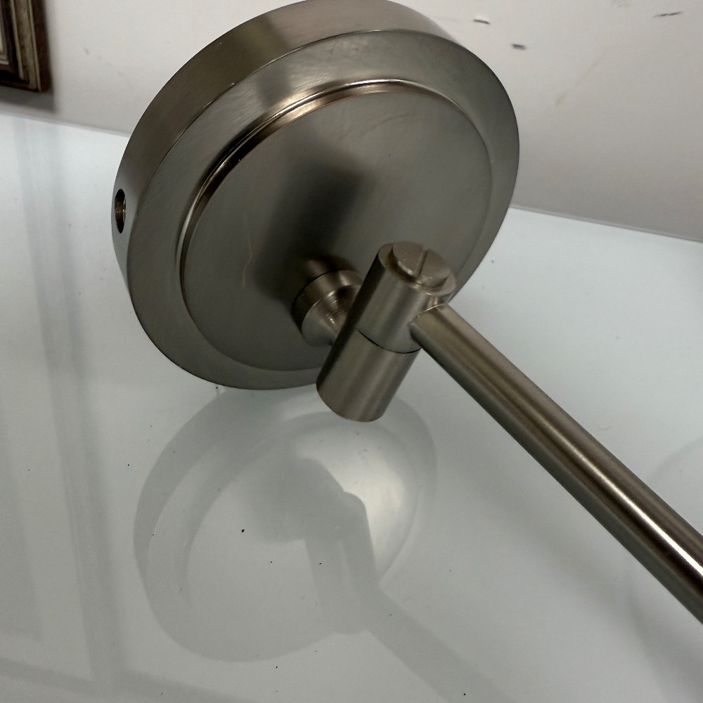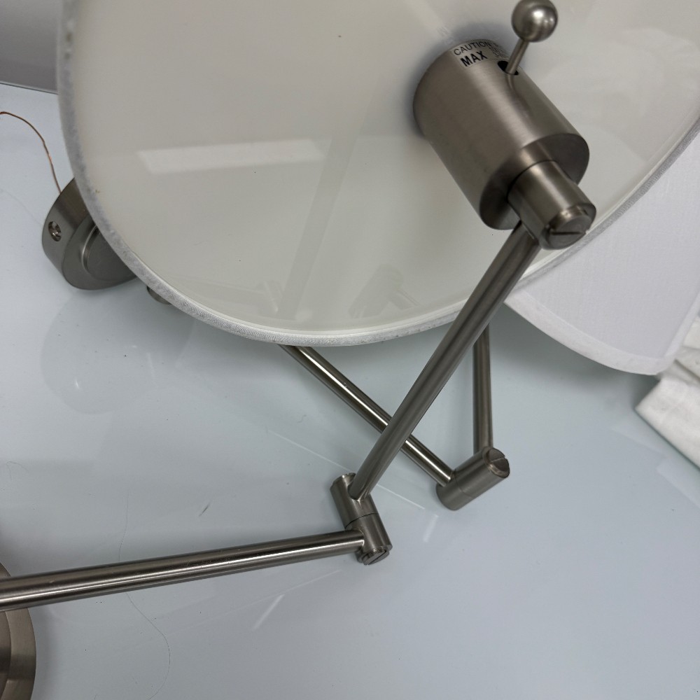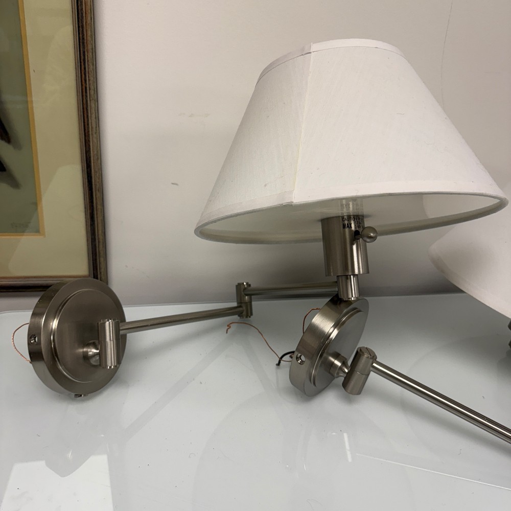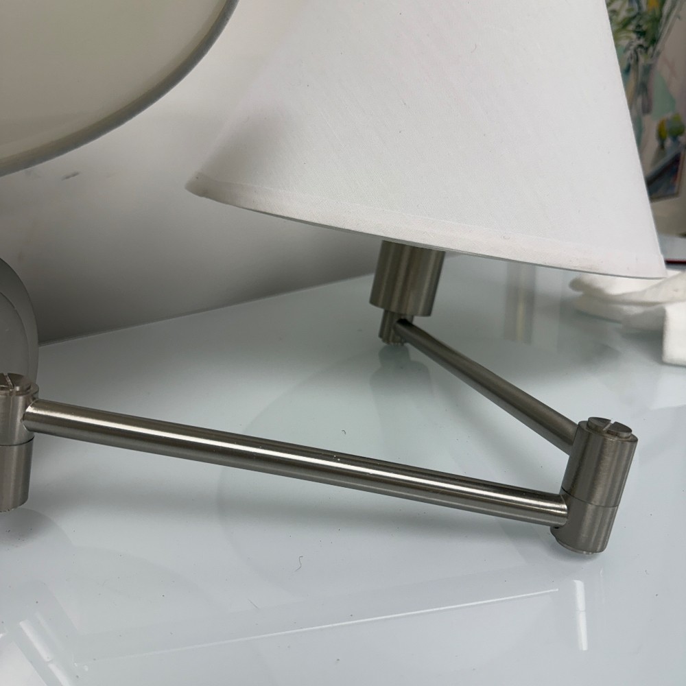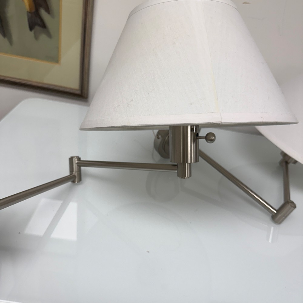 with adjustable arms, 5" d wall plate, 7" tall shade and 13" D