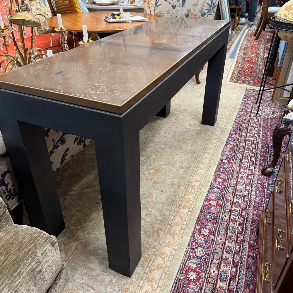 19.5" x 30" tall x 58.5" long - sturdy - black wood legs