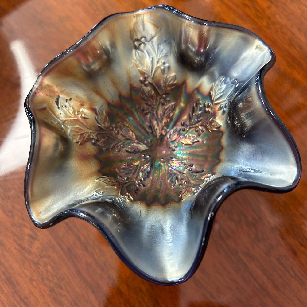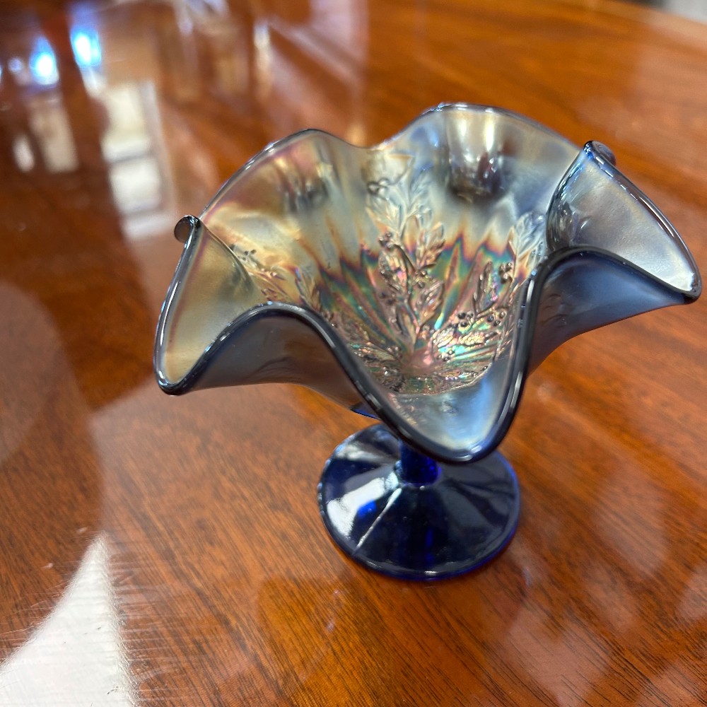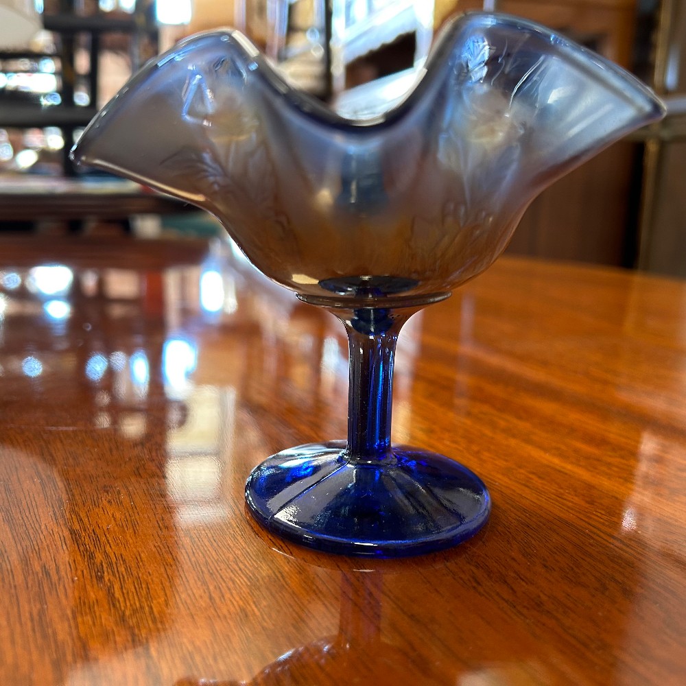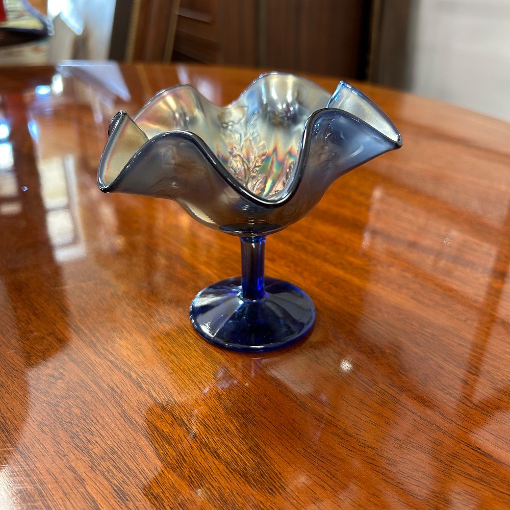 Vintage, cobalt blue and golden, copper silver. Measuring 4 1/4"T x 5"D. Condition as pictured