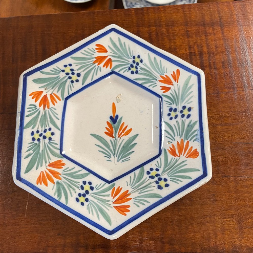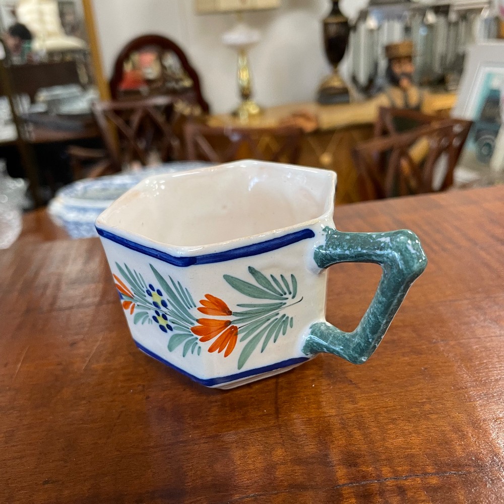 hexagon shape, cup h. 2 1/2", w. 3"x 3", saucer 5 1/4"x 5 1/4"