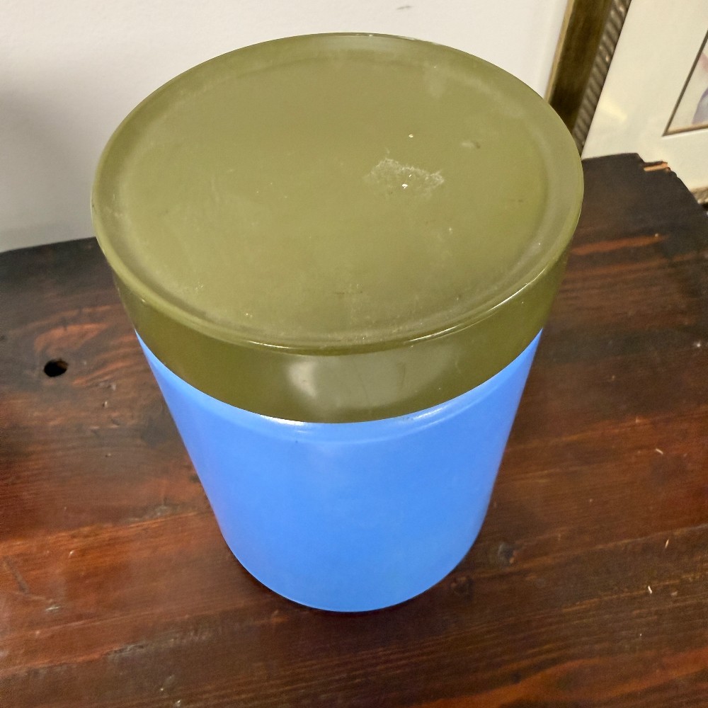 7.5" tall and 5" D - glass & plastic top